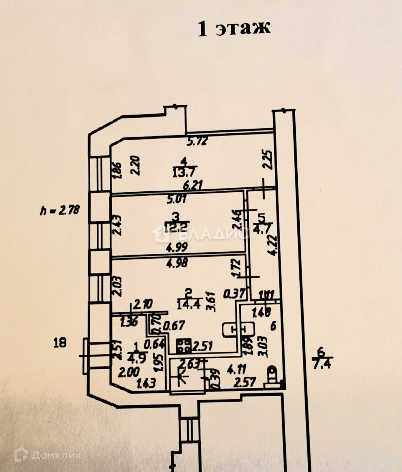 Высота потолков 2.78 м