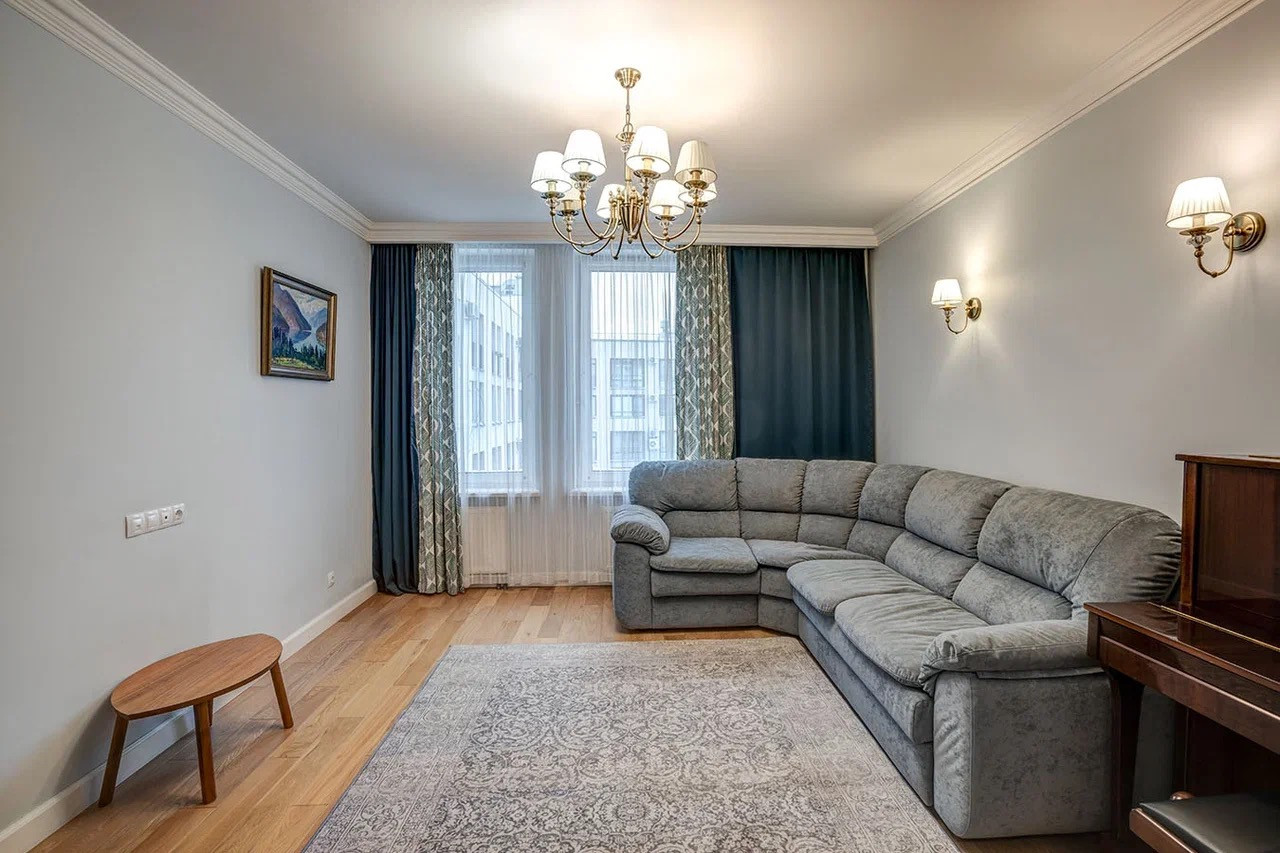 Кухонная столешница из кварцевого агломерата, наполнение систем хранения сложными выдвижными и поворотными системами,  тёплый пол в санузлах и на кухне.В квартире остается мебель и техника.