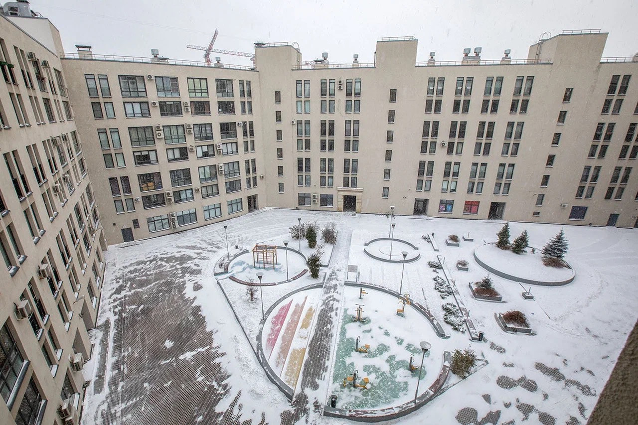 Вход в комплекс осуществляется с закрытого двора с детской площадкой. В фасадной части комплекса расположены салоны красоты, спортивные залы, частные клиники, аптеки, центр детского досуга, продуктовые магазины, кафе и рестораны.