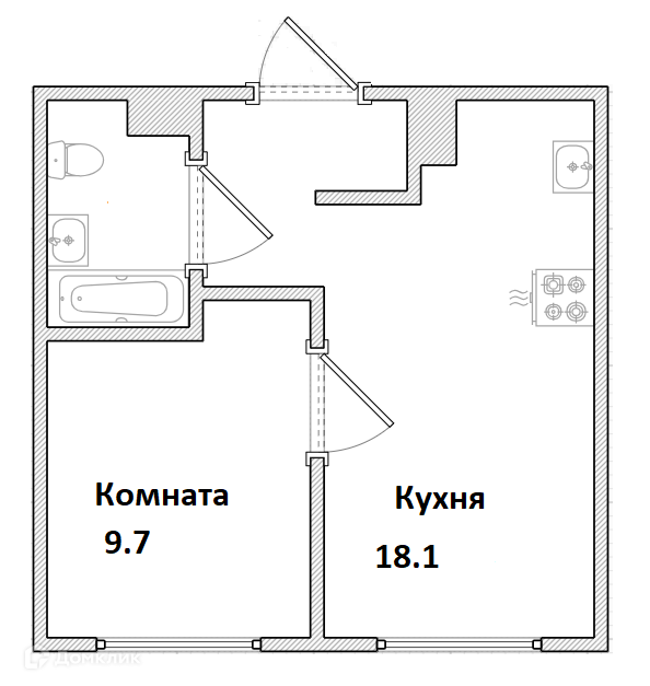 Жилая площадь 9.7 м2