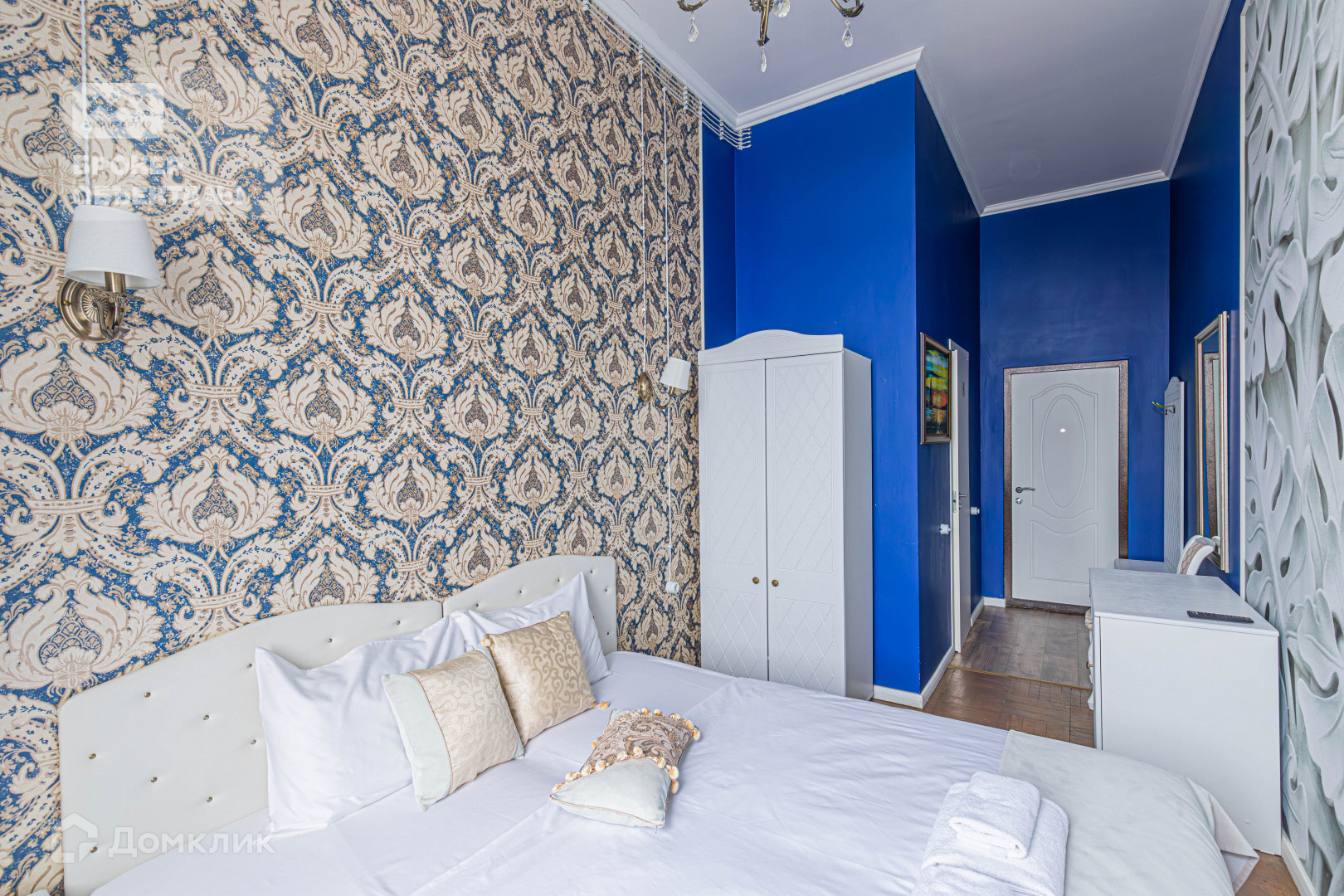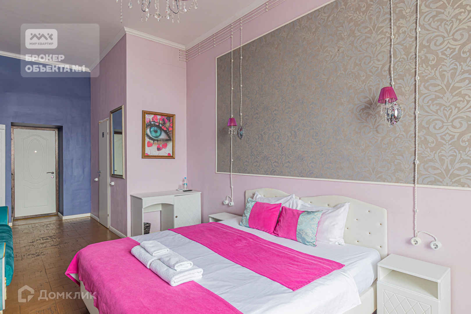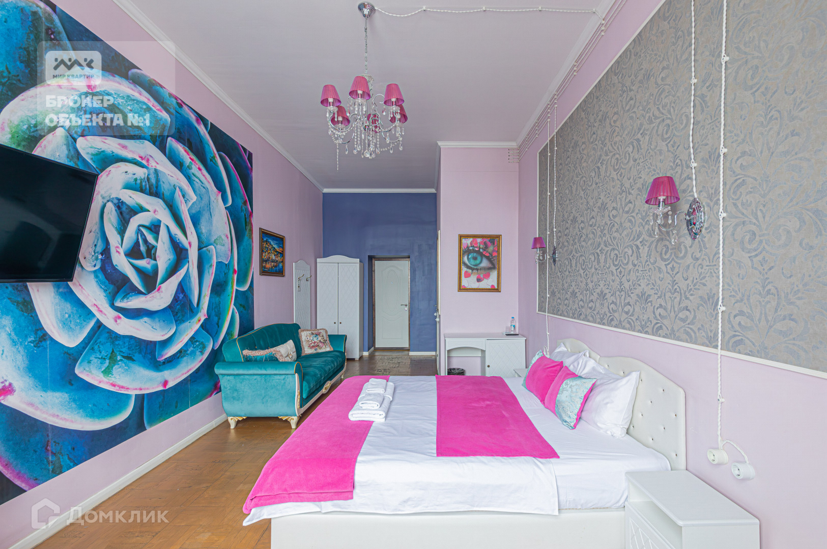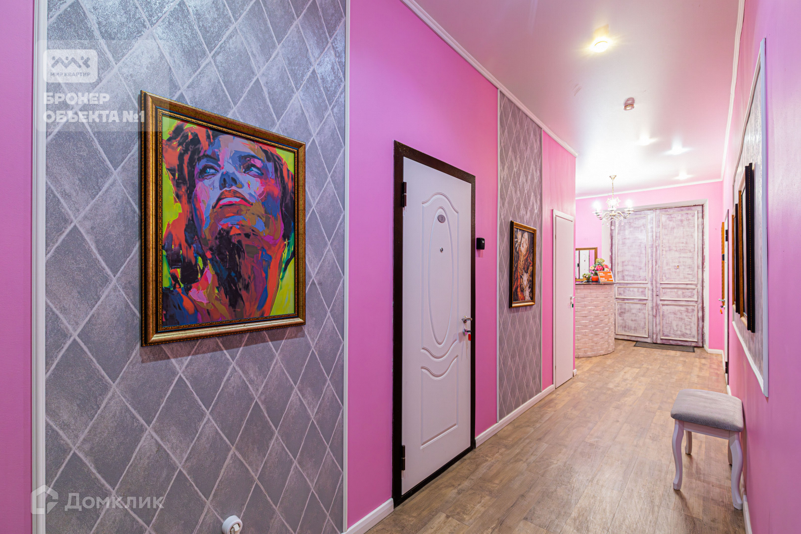 Квартира выполнена в ярком дизайнерском стиле и имеет площадь 377 квадратных метров. Она разделена на 17 отдельных комнат, каждая из которых оборудована санузлом с душевой. Высота потолков составляет 4,2 метра.  Расположение дома является его одной из главных преимуществ.