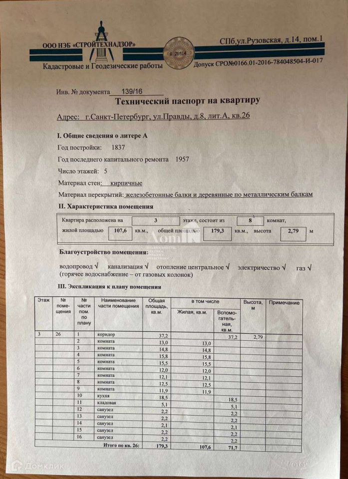Многокомнатная квартира, 179.3 м2, этаж 3 / 5, на продажу в Санкт-Петербурге, улица Правды, 8
