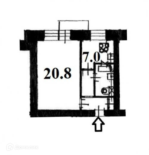 Жилая площадь 20.8 м2