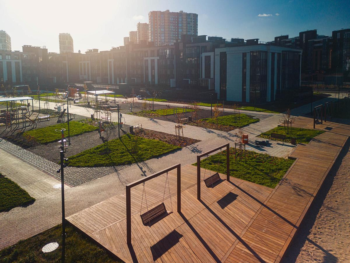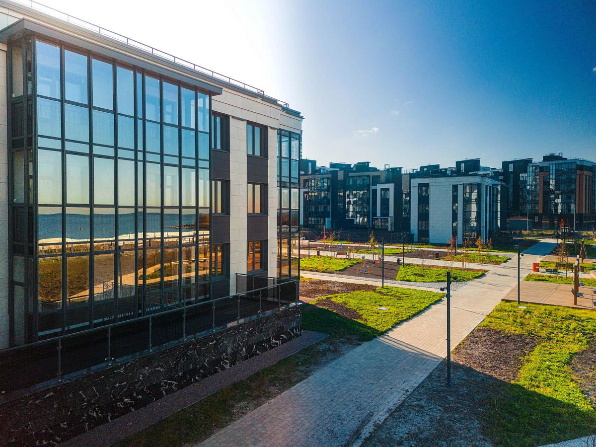 Жилой квартал построен у акватории финского залива в самом современном районе "Балтийска жемчужина" и представляет собой продуманную концепцию приватных и общественных пространств. Благоустроенная дворовая территория оснащённая площадками для отдыха и развлечений всей семьи полностью закрыта от посторонних.