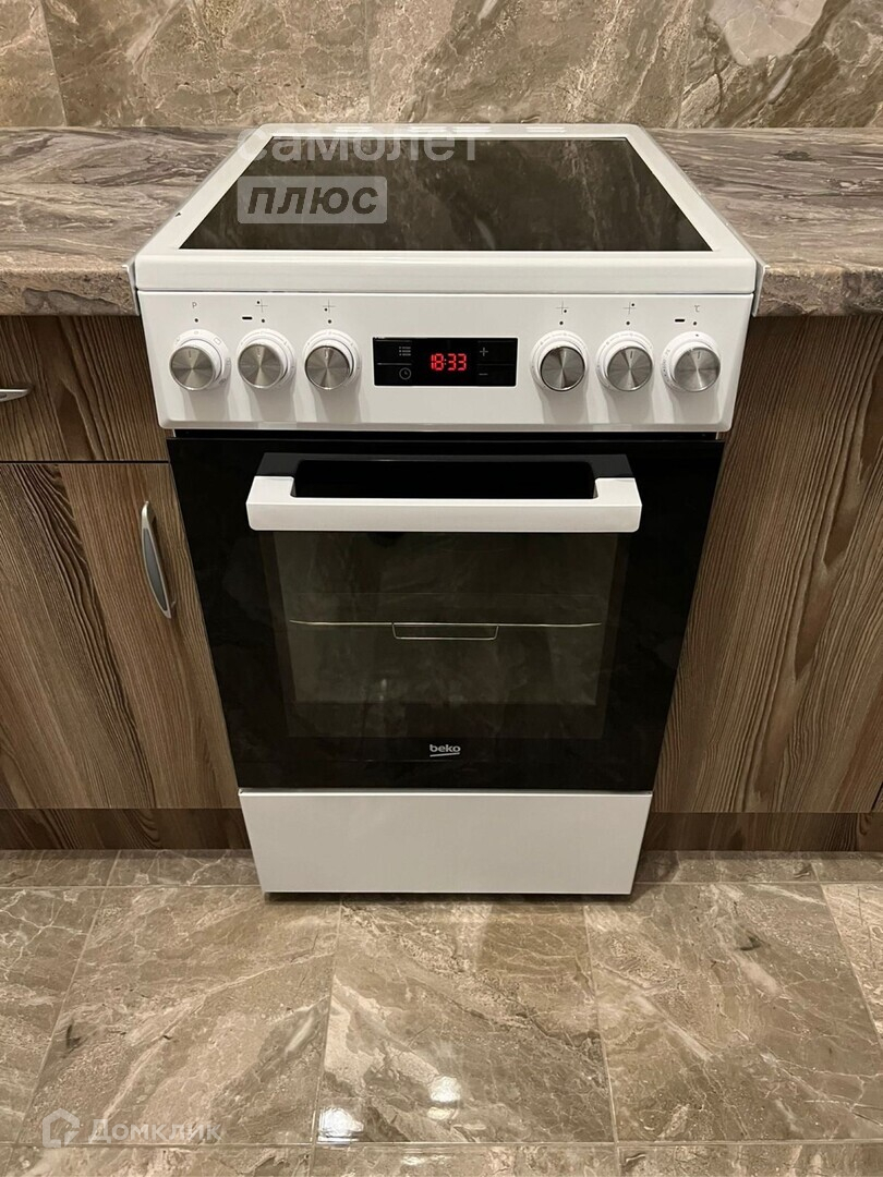 На кухне есть вся необходимая мебель и техника.