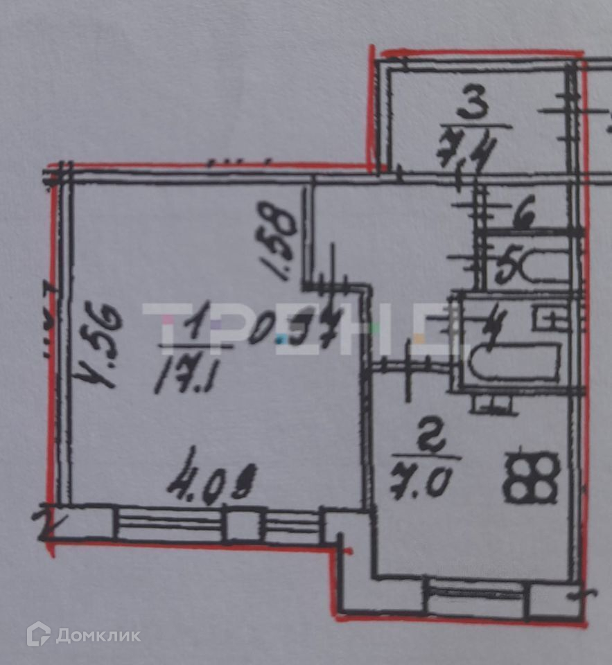 Жилая площадь 17.1 м2