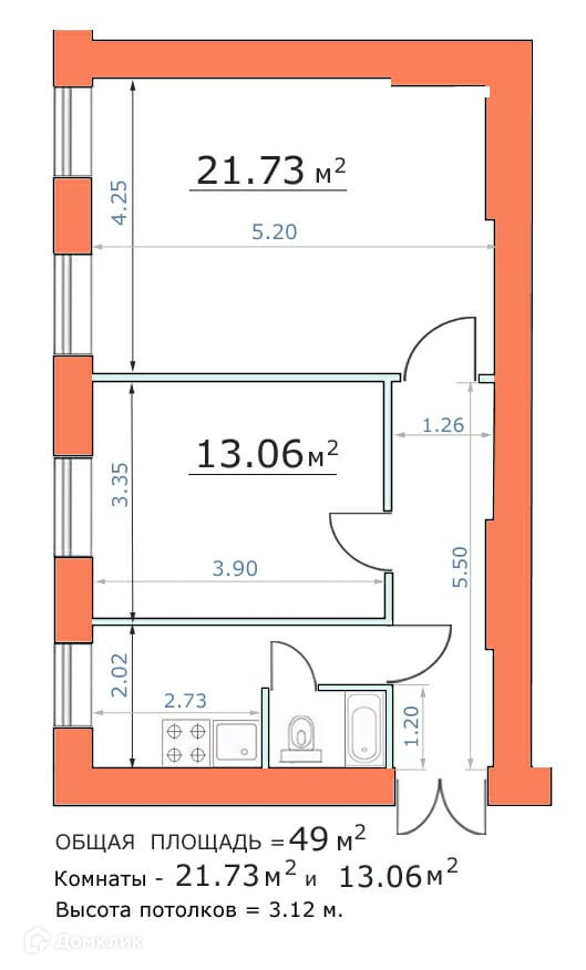 Общая площадь 49 м2