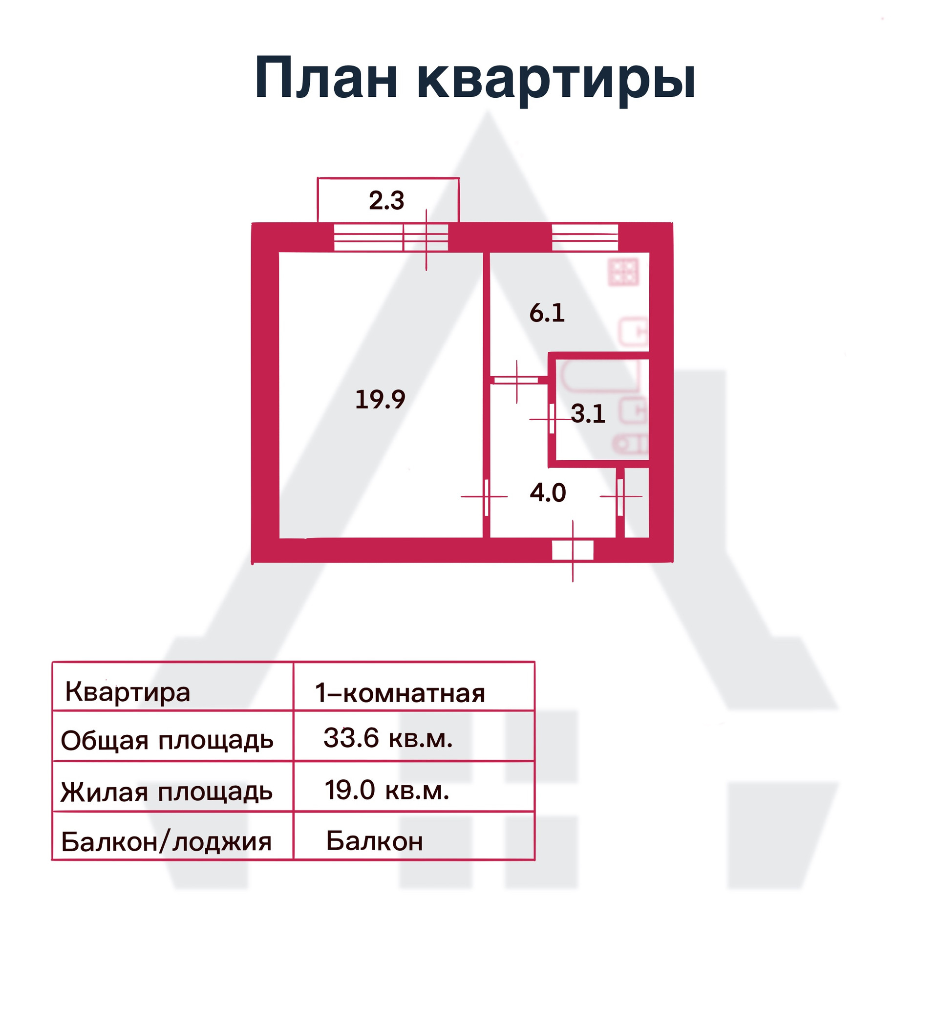 Общая площадь 33.6 м2