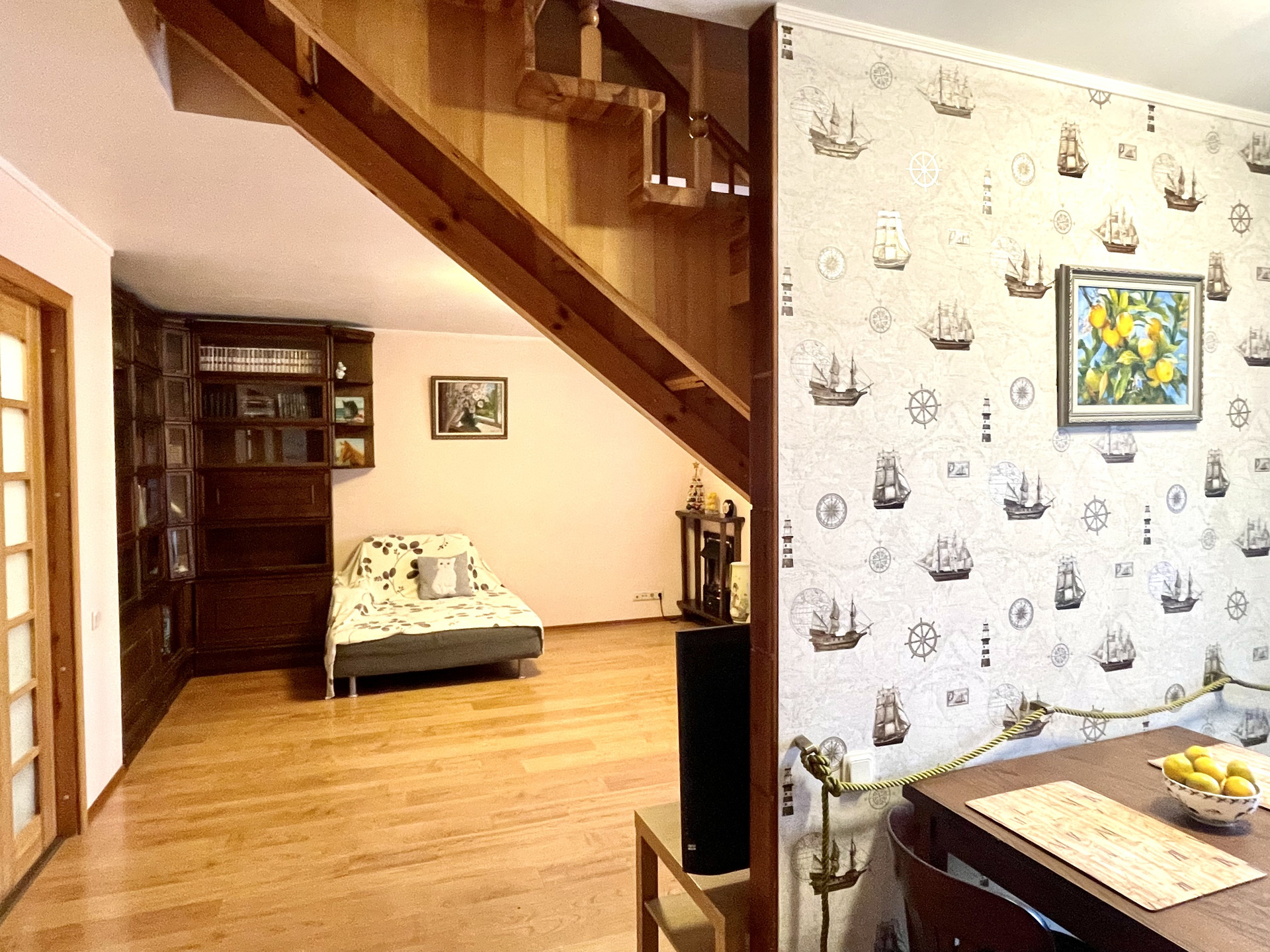 Идеальная планировка! Первый этаж - это пространство для уютных семейных вечеров или приема гостей: просторная гостиная, совмещенная с кухней, и гостевой санузел с душевой кабиной. Второй этаж - приватная зона, там расположены две спальни, санузел с ванной и гардеробная. Вид из окон на две стороны, в большой зеленый двор и на гостиницу Прибалтийская. В квартире три остекленных балкона!