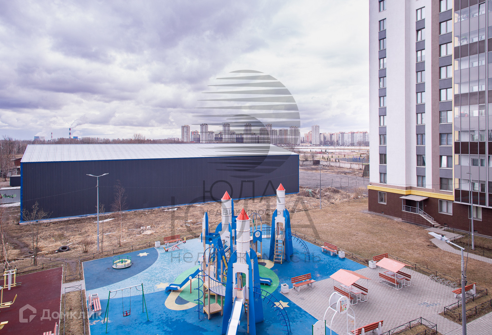 Территория облагороженная, детский садик около дома, спортивные площадки построены по современным стандартам, много магазинов, медицинский центр.