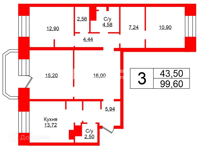 Общая площадь 99.6 м2