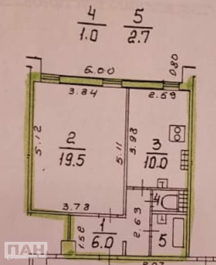 Жилая площадь 19.5 м2