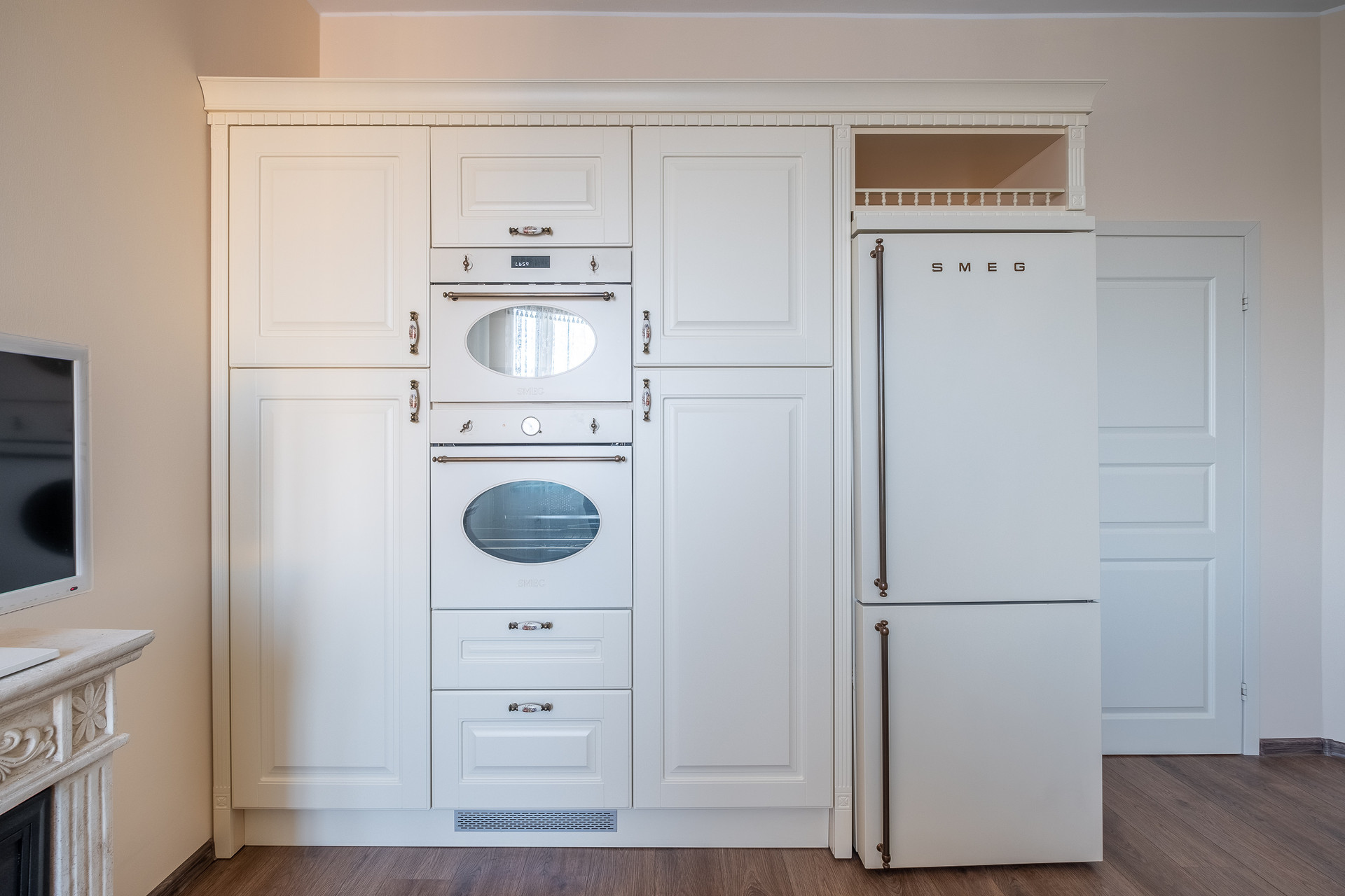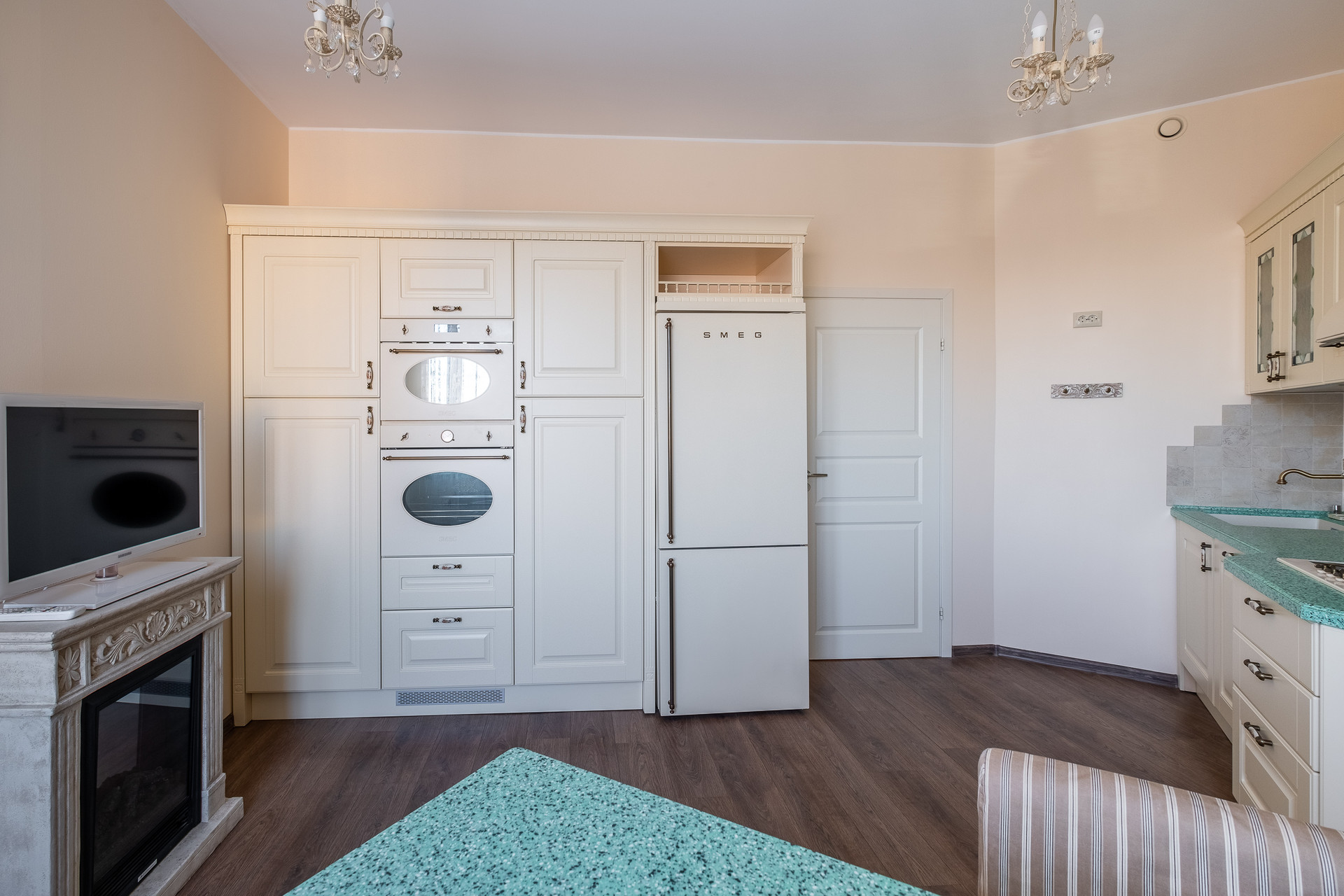 - Просторную кухню (16,3 кв.м.) со всей необходимой техникой SMEG;