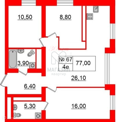 - Общая площадь - 77 м2