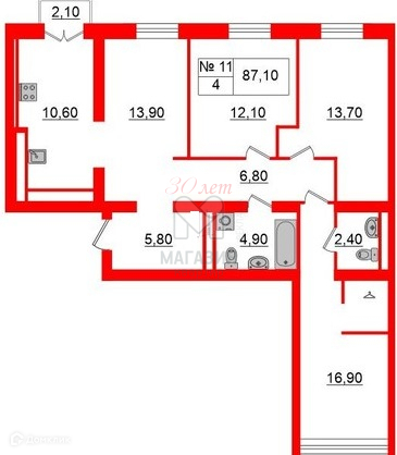 - Общая площадь - 88 м2