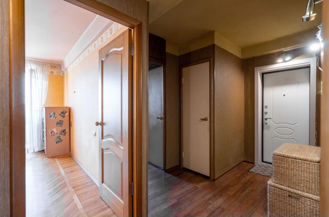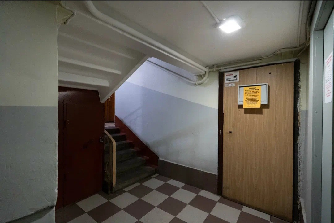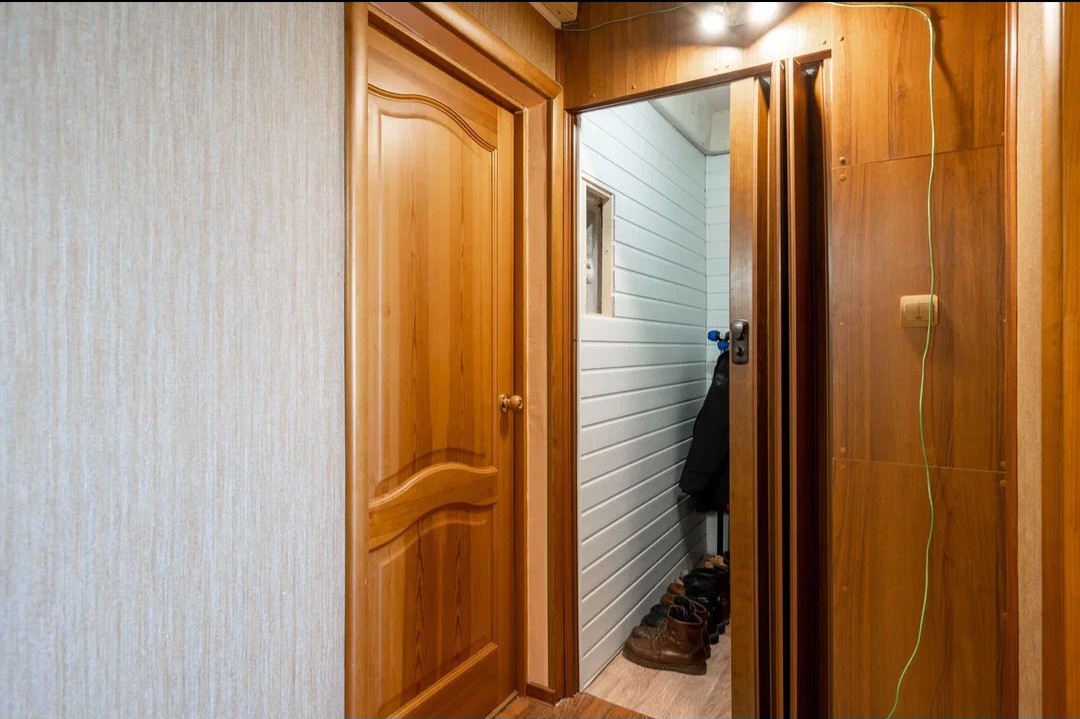 На лестничной площадке отгорожен тамбур только на эту квартиру, где можно хранить коляску, велосипеды или разместить шкаф для хранения вещей.