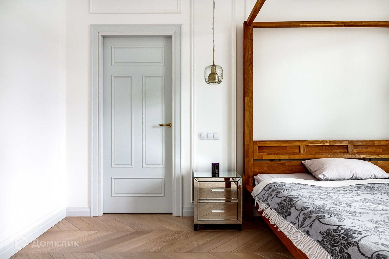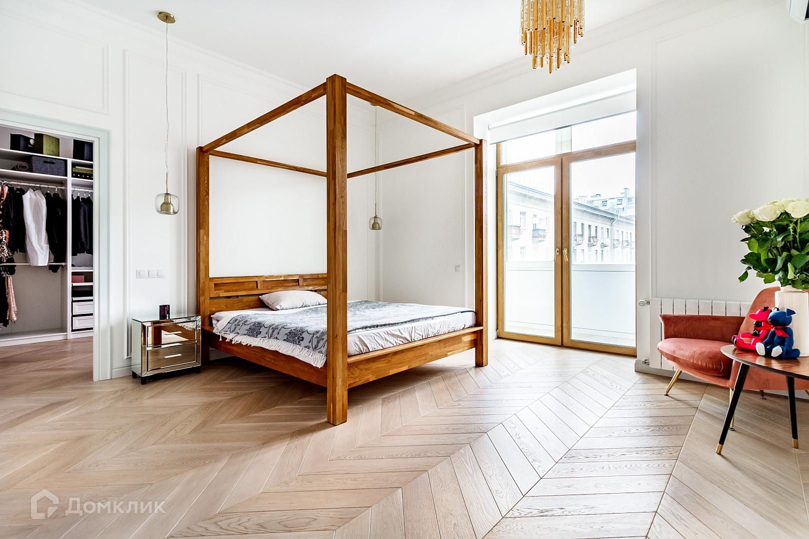Главная мастер-спальня с собственной ванной, гардеробом и балконом. Помимо этого, в квартире ещё 3 комнаты, каждая из которых оборудована всем необходимым для комфортного проживания. Предусмотрена гостевая комната. Установлено много систем хранения, несколько санузлов, постирочная. Дубовый паркет, мебель и техника премиальных брендов. В дизайне обилие стекла, золота и натуральных материалов.