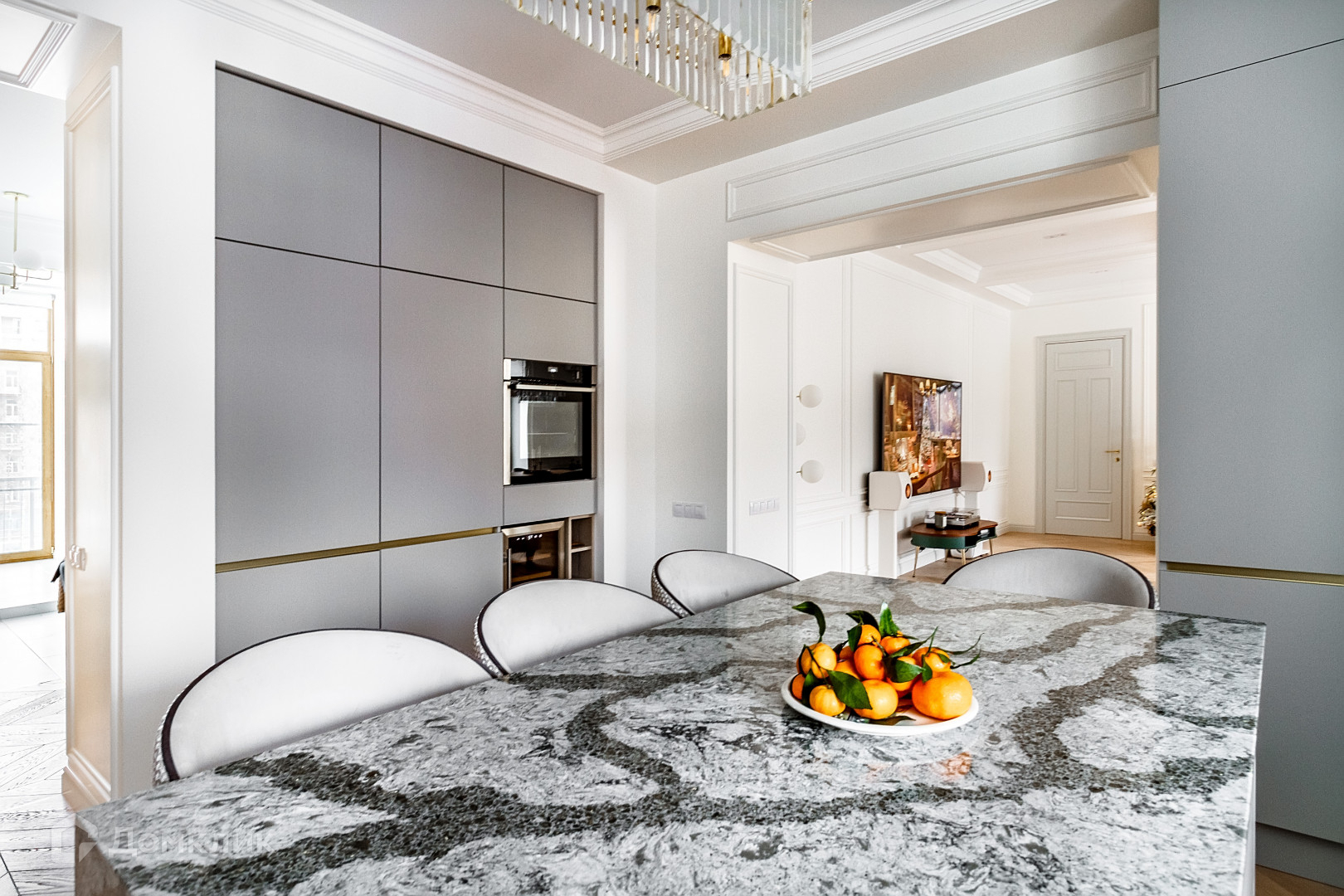Кухня в квартире спроектирована с организатором пространства: все хранение продумано до мелочей.