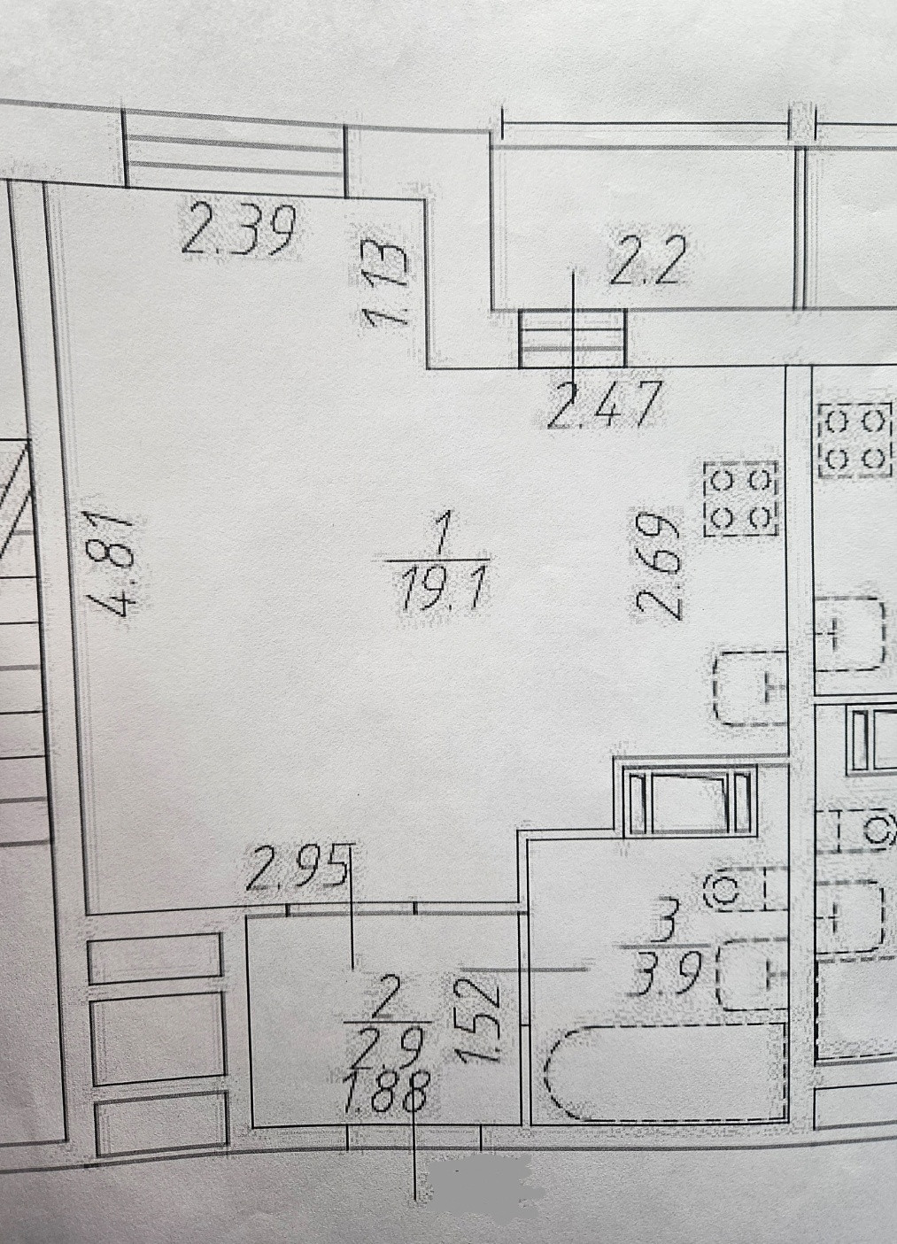 Жилая площадь 19.1 м2