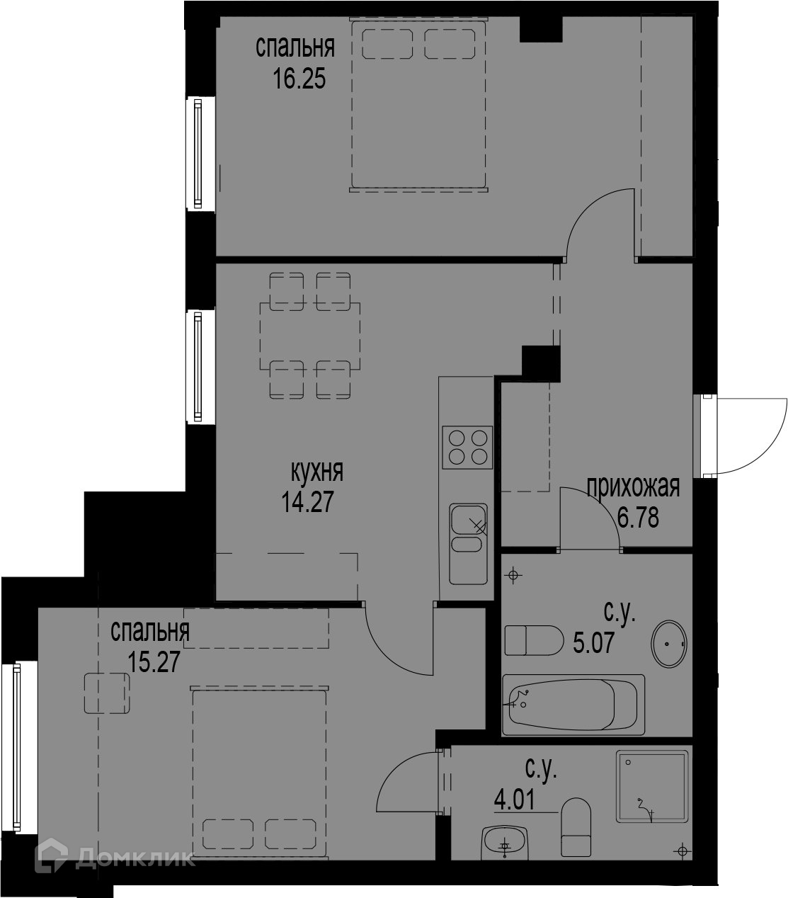 Площадь кухни 14.27 м2
