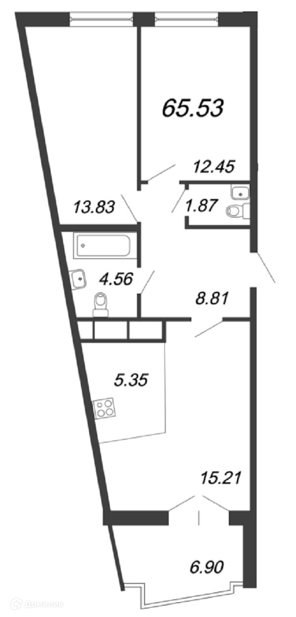 2-комнатная квартира, 65.5 м2, этаж 9 / 14, на продажу в Санкт-Петербурге, набережная Миклухо-Маклая, 1к1