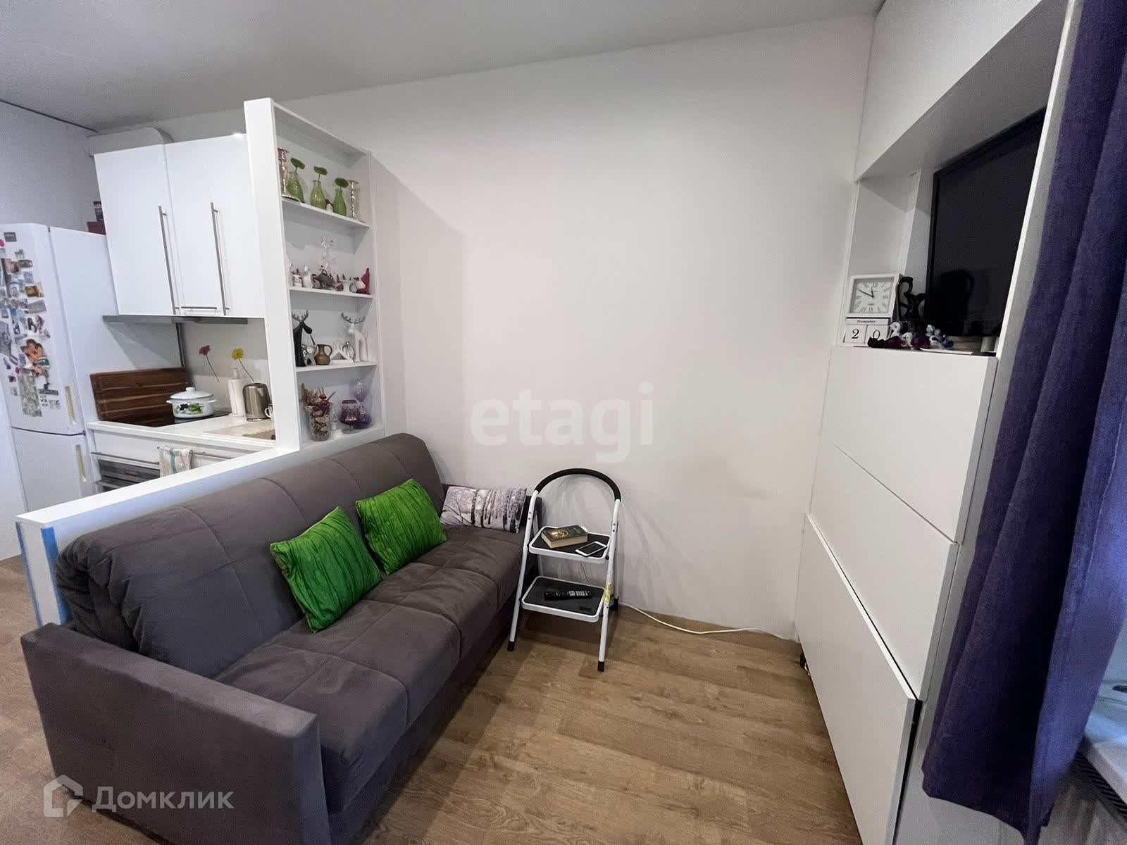 Уютная студия как шкатулка :)). С лоджией 30 м. Входная дверь с большим зеркалом. Много мест хранения в санузле и в комнате. Оборудованная кухонная зона духовой шкаф Электролюкс варочная панель Куперсберг, мини посудомоечная машина, холодильник Самсунг, стиральная машина Бош. Выполнено зонирование спальной и обеденной зоны. Встают два дивана или диван и кровать. Рабочее место под компьютер и принтер. Большая лоджия. Вся мебель и техника остаются покупателю. В доме детский сад, студии, стоматологии, салоны красоты. Наземный и подземный паркинг , аренда 4,5-6,5 тысяч . Удачное местоположение. Продажа в связи с переездом. В собственности более 5 лет. Агентов прошу беспокоить с реальным покупателем. За наличный расчёт хороший торг.