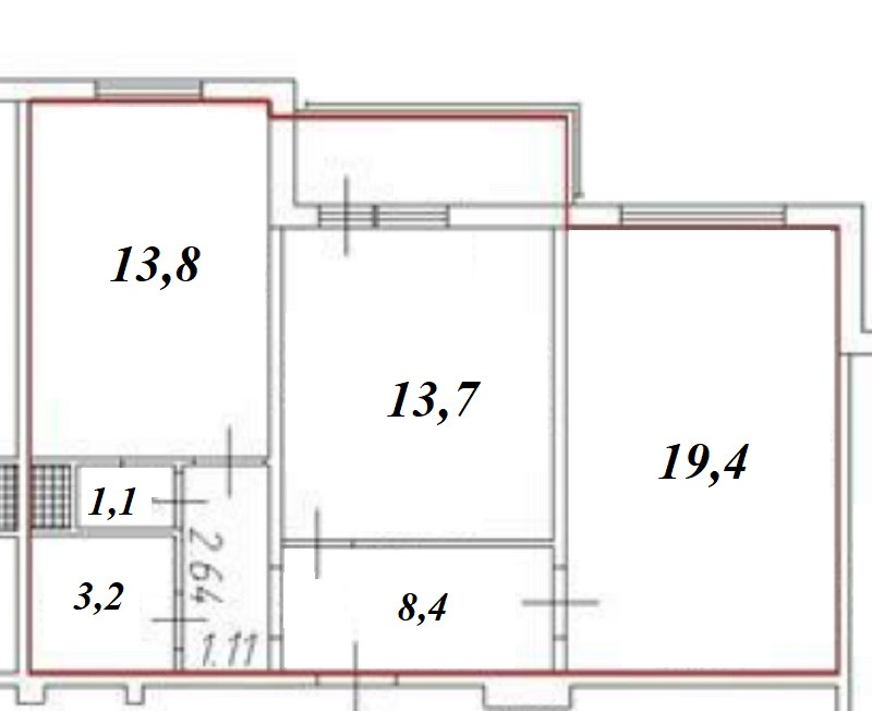 Жилая площадь 33.1 м2
