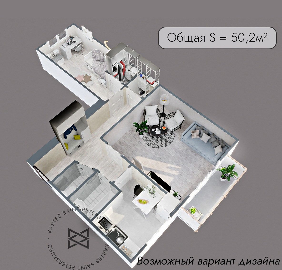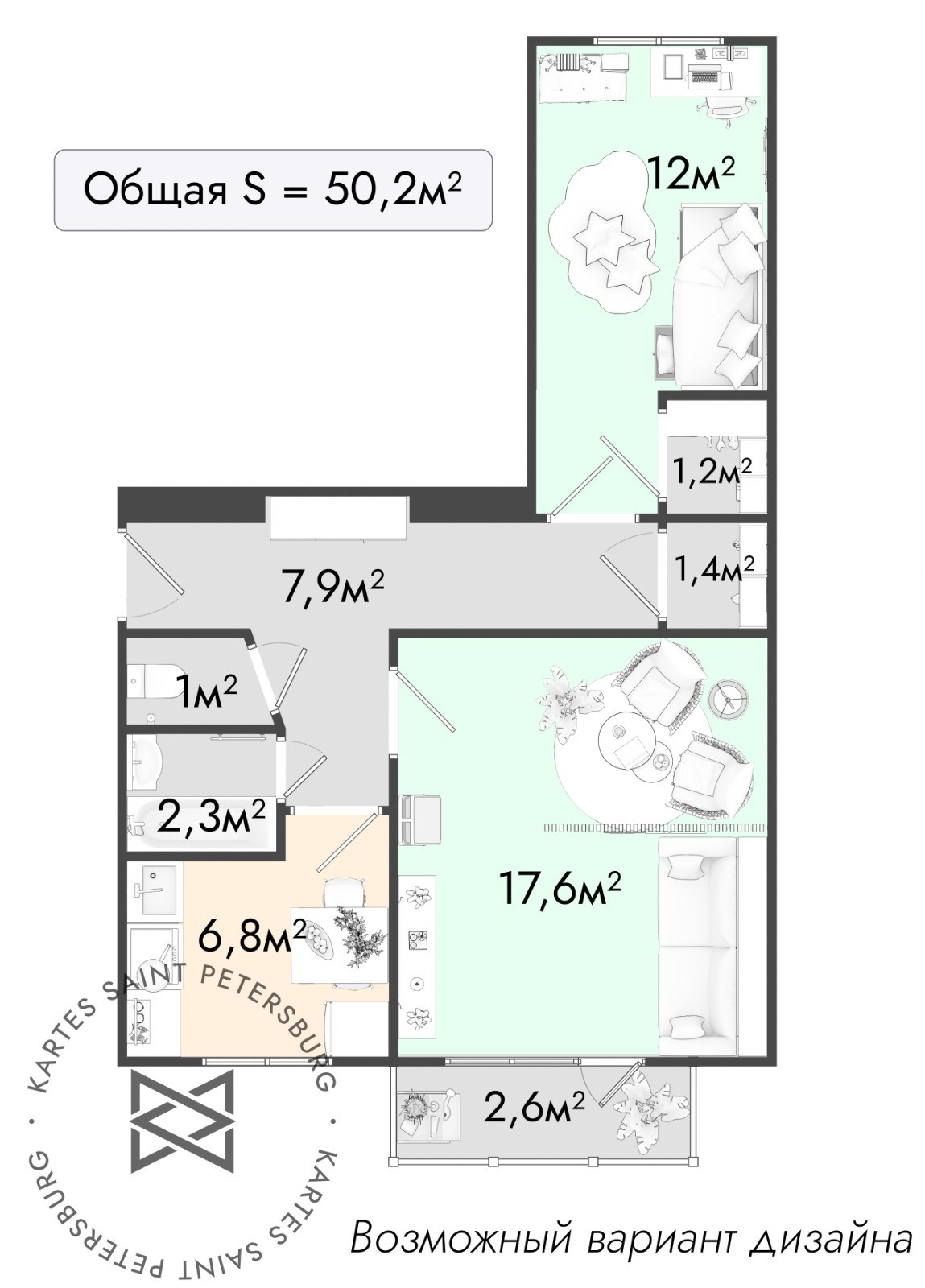 Общая площадь 50.2 м2