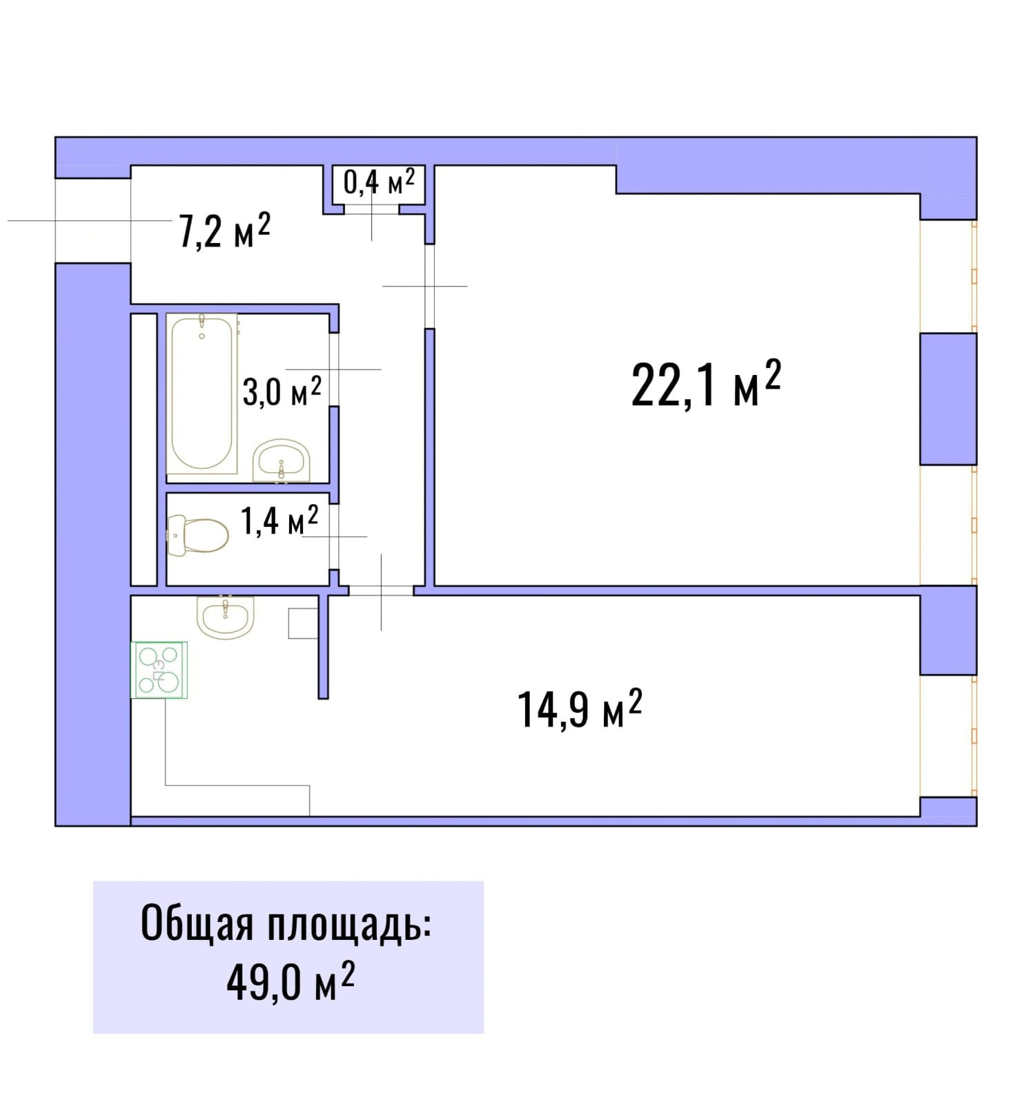 Общая площадь 49 м2