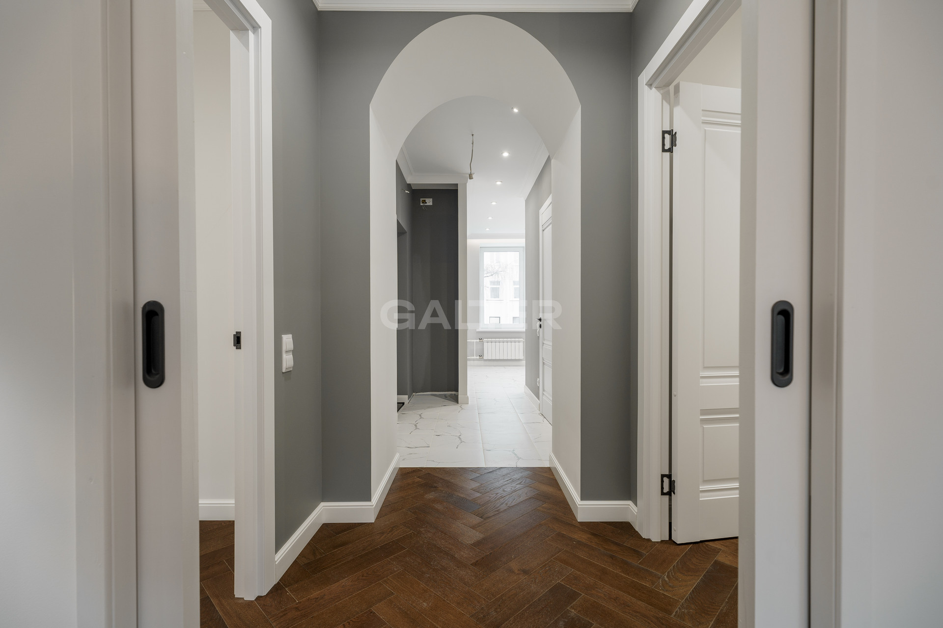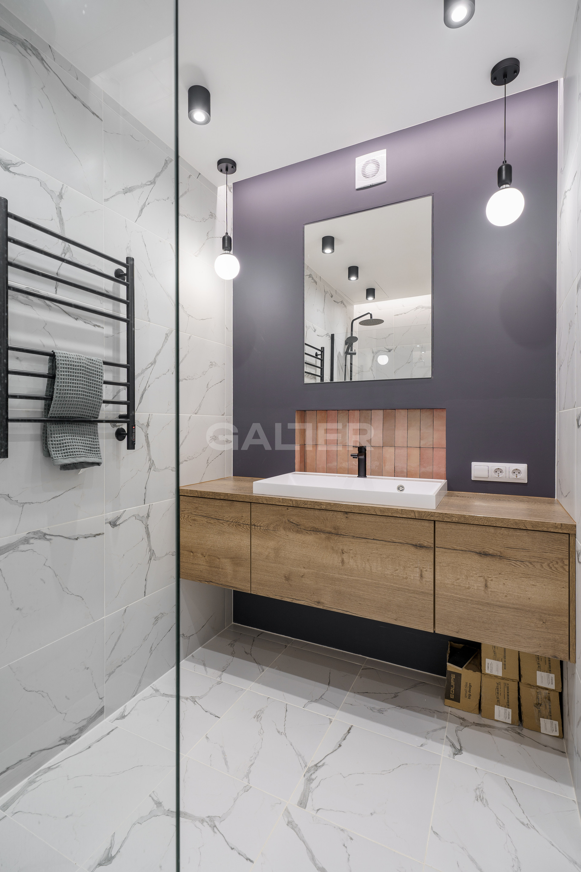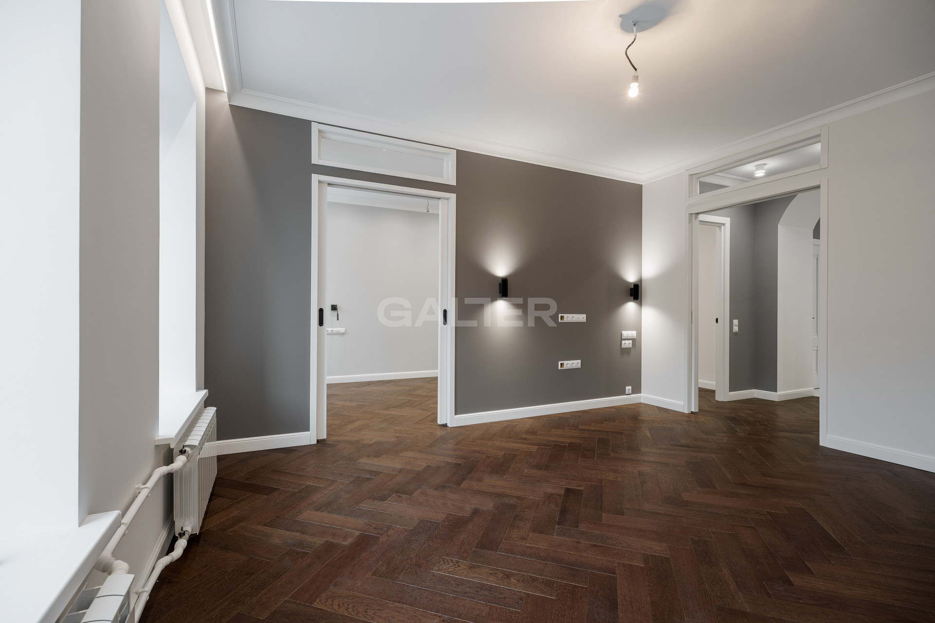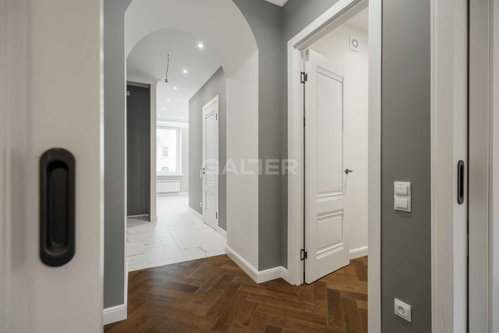 - Выполнены полный демонтаж с расчетом нагрузки и укреплением перекрытий, полусухая стяжка, выравнивание стен, приточная вентиляция, шумоизоляция