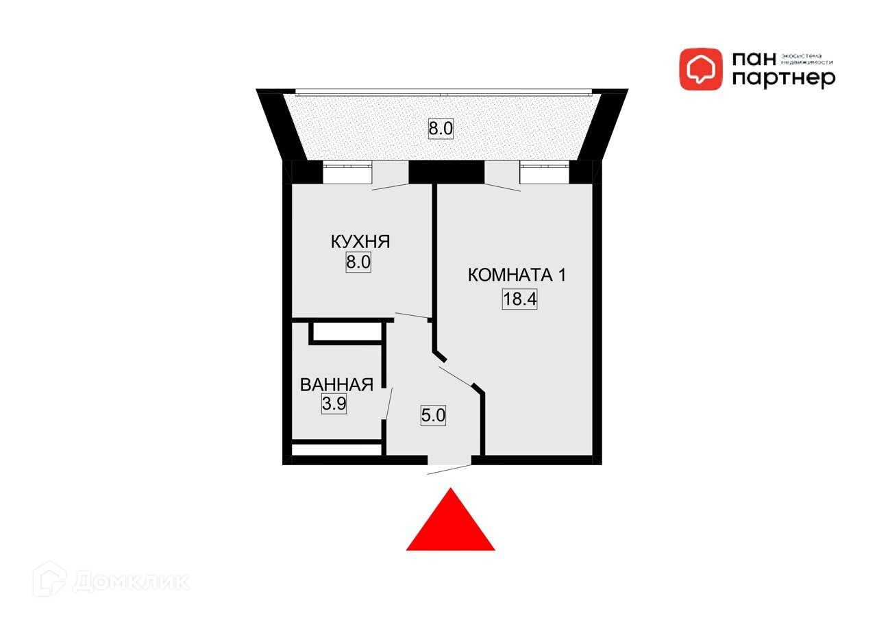 Жилая площадь 18.4 м2