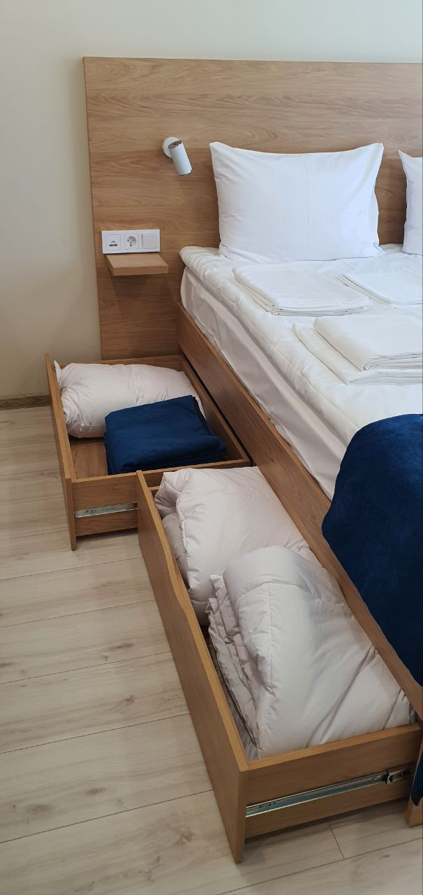 В рамках проекта предусмотрено открытие ресторана и кафетерия, фитнес-зала и мини-кинотеатра, а для детей  игровая зона. Жители и гости комплекса могут пользоваться услугами прачечной и room-service. На набережной зимой заливают каток, а летом обустраивают пространство для проведения фестивалей под открытым небом. Территория отеля закрыта и ведется круглосуточное видеонаблюдение. Доступ к жилой части возможен только по электронным ключам, что исключает появление в здании случайных посетителей.