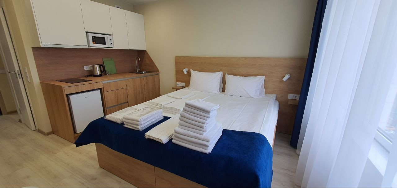 В апартаментах ДВА ОКНА.