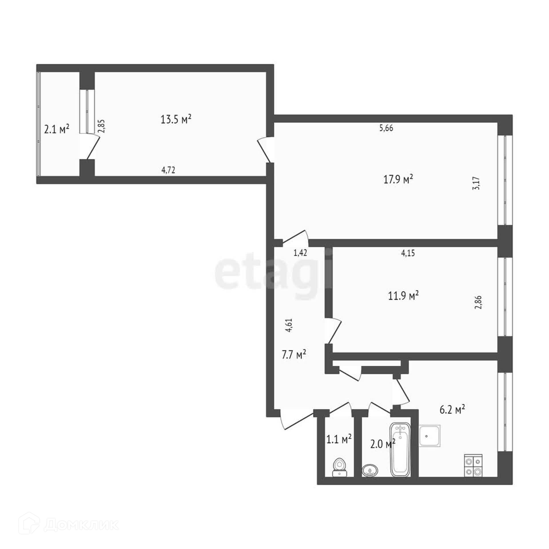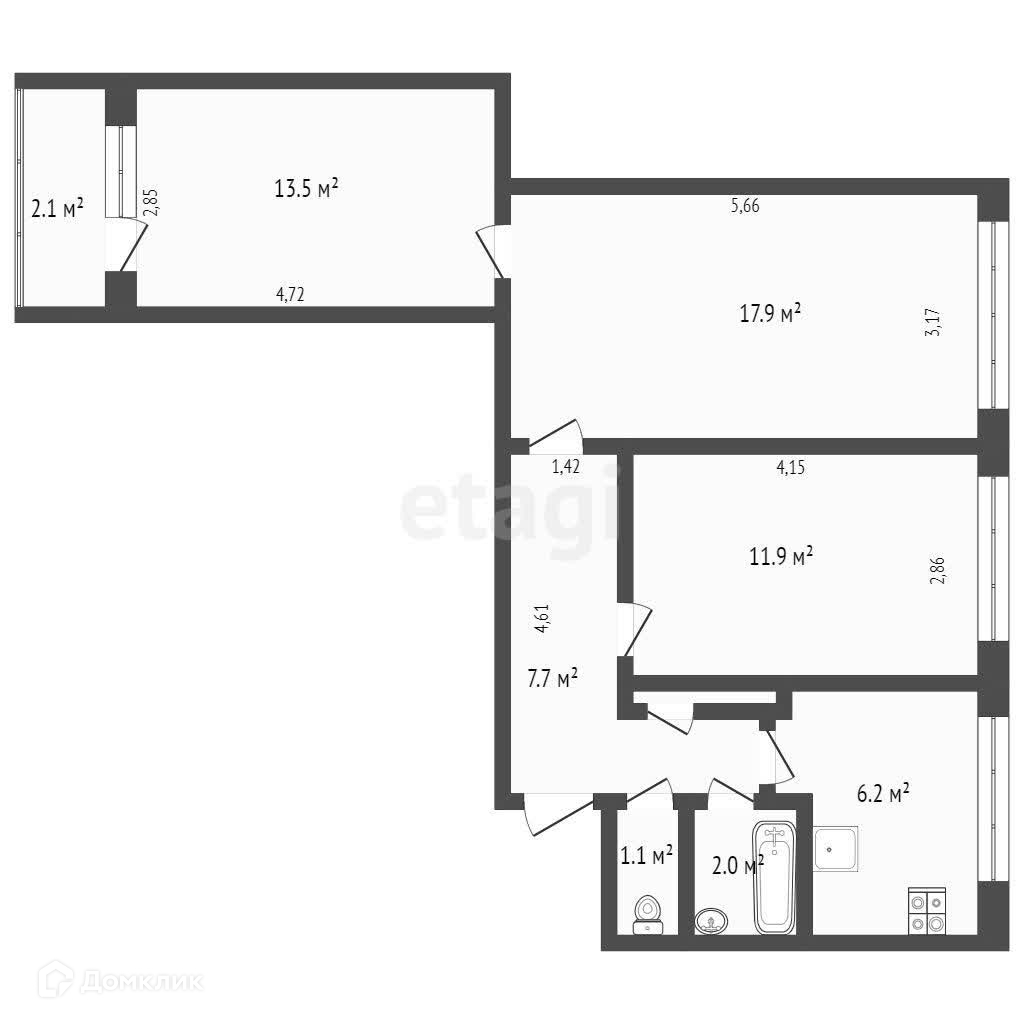 Общая площадь 60.9 м2