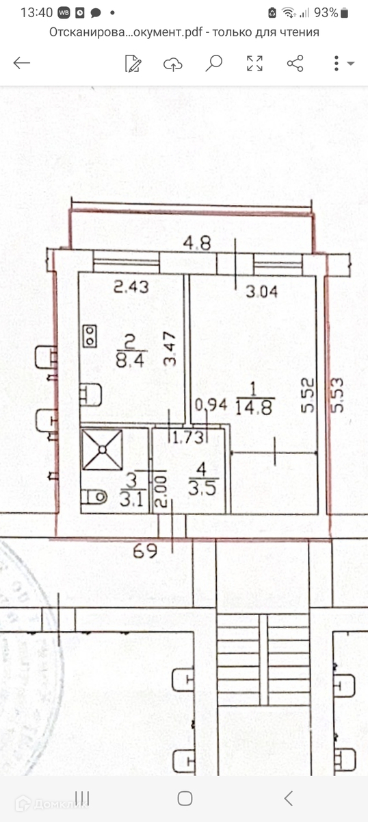 Общая площадь 29.8 м2