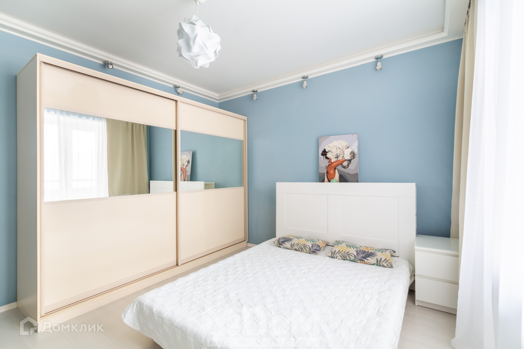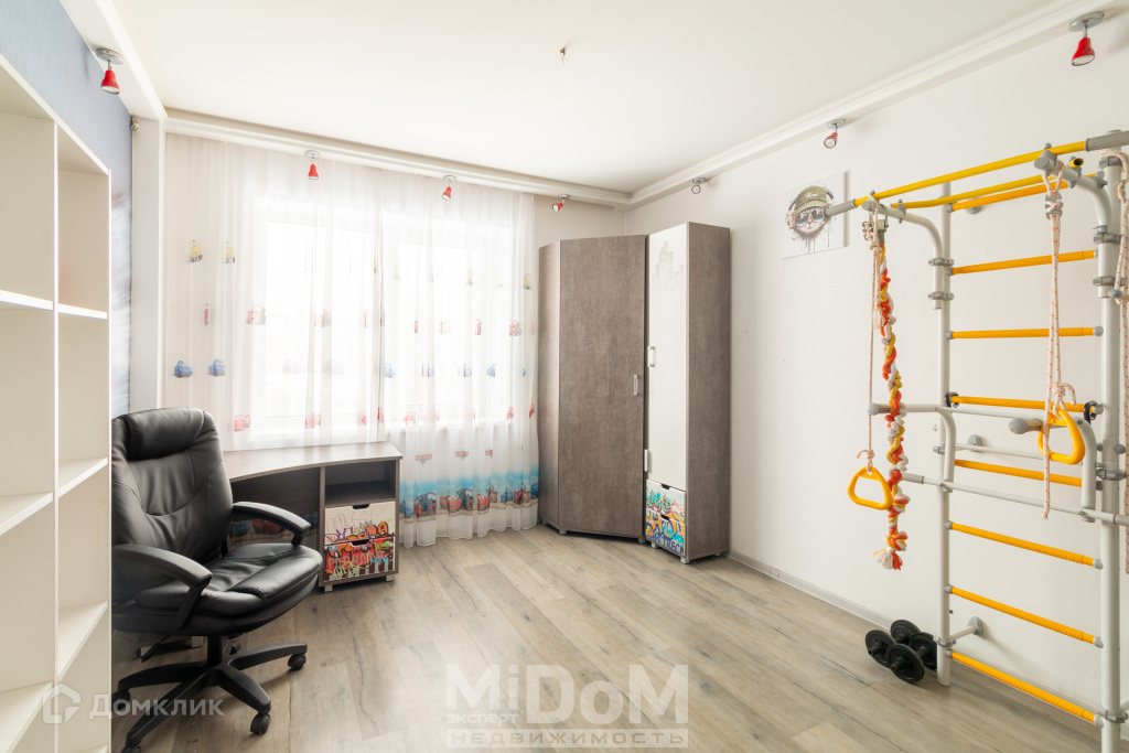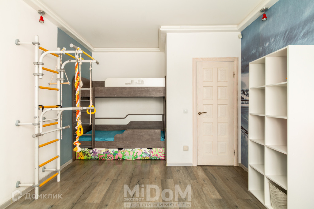 Ещё две комнаты укомплектованы всем необходимым: Огромный шкаф-купе, закрывающий все потребности в гардеробе, каркас двуспальной кровать 160х200 см, Комод ИКЕА, а в детской – рабочий стол с креслом, двухъярусная кровать на две персоны и гардероб.