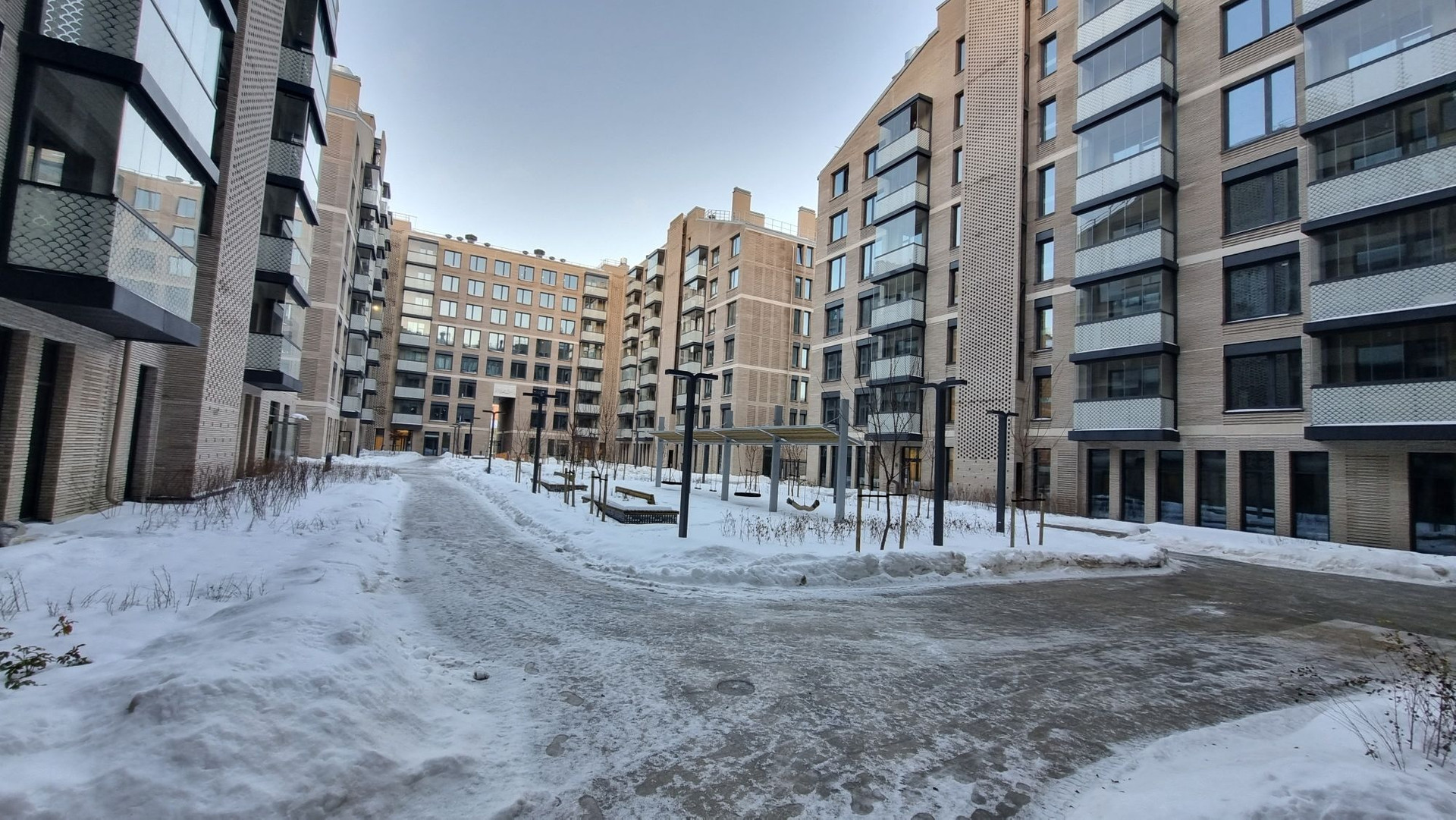Очень удачное расположение! Квартира очень тихая, окна на пешеходный променад внутри ЖК!