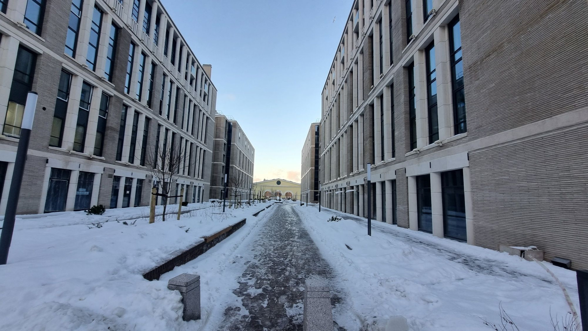Благоустроенная территория жилого комплекса разделена на 2 части: территории внутри исторического периметра, включающие в себя торговый променад, общественные зоны и детский сад, а также приватная дворовая часть блока А и Б, куда имеют доступ только жители.