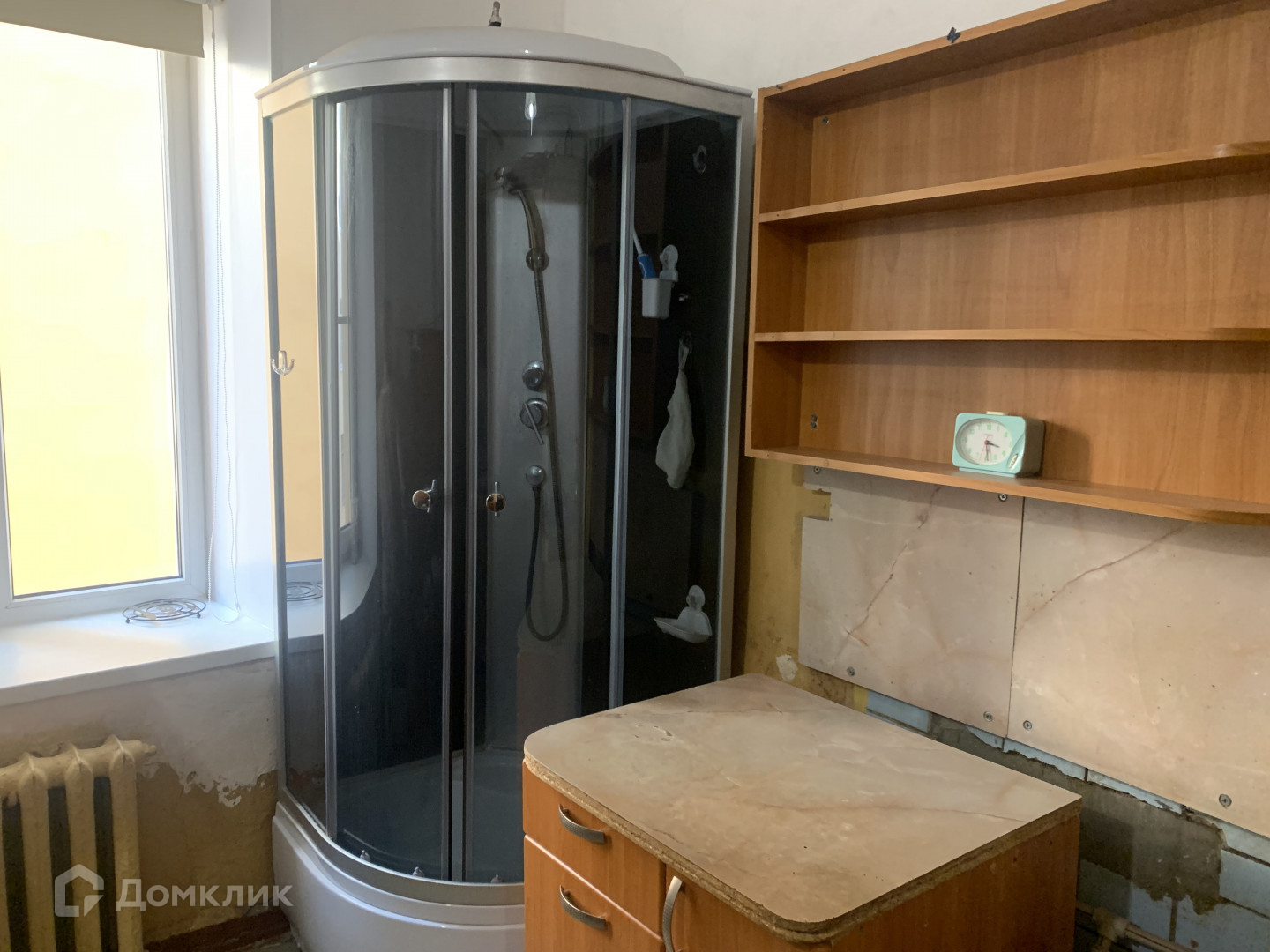Душевая кабина установлена на кухне. При желании можно сделать отдельную ванну с окном.