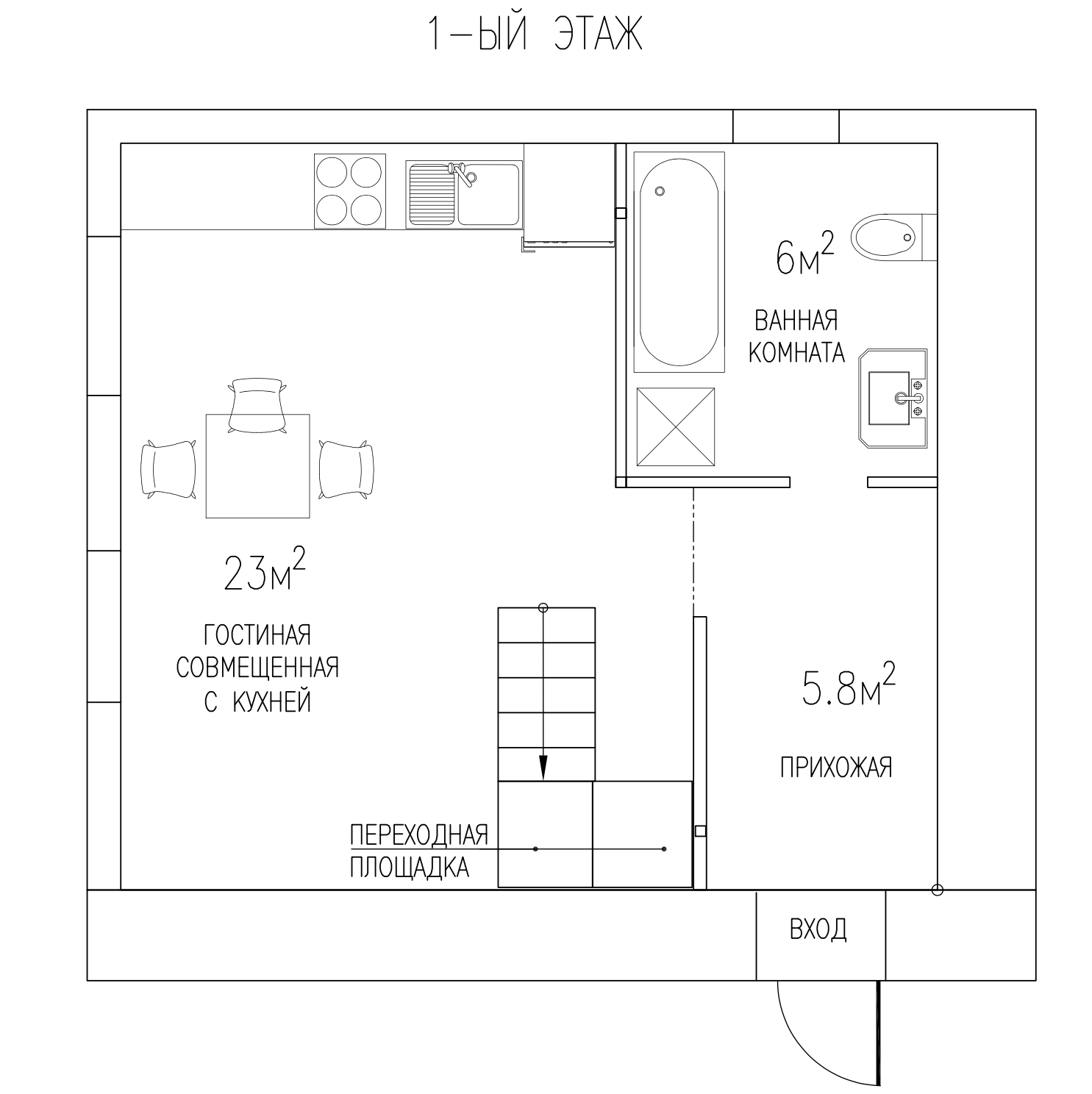 Площадь кухни 23 м2