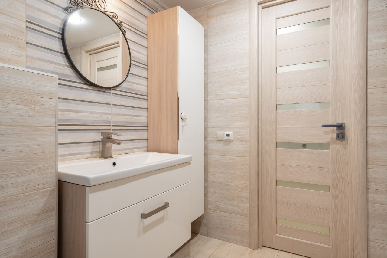 В квартире был проведен капитальный ремонт в 2017 году, включая снятие пола до нуля, замены всей электрической проводки, водопроводных и канализационных труб. Скрывать не будем, некоторые зоны в прихожей и коридоре можно освежить просто краской на свой вкус.