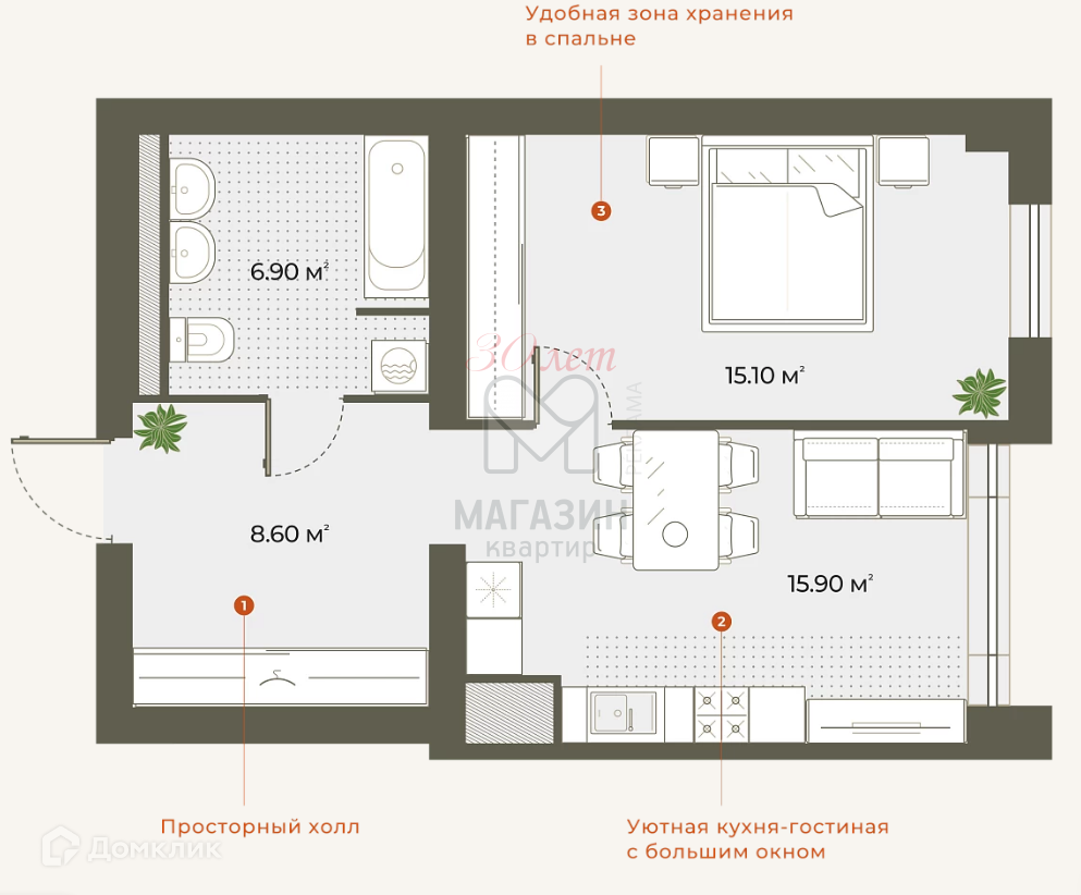 - Жилая - 15 м2