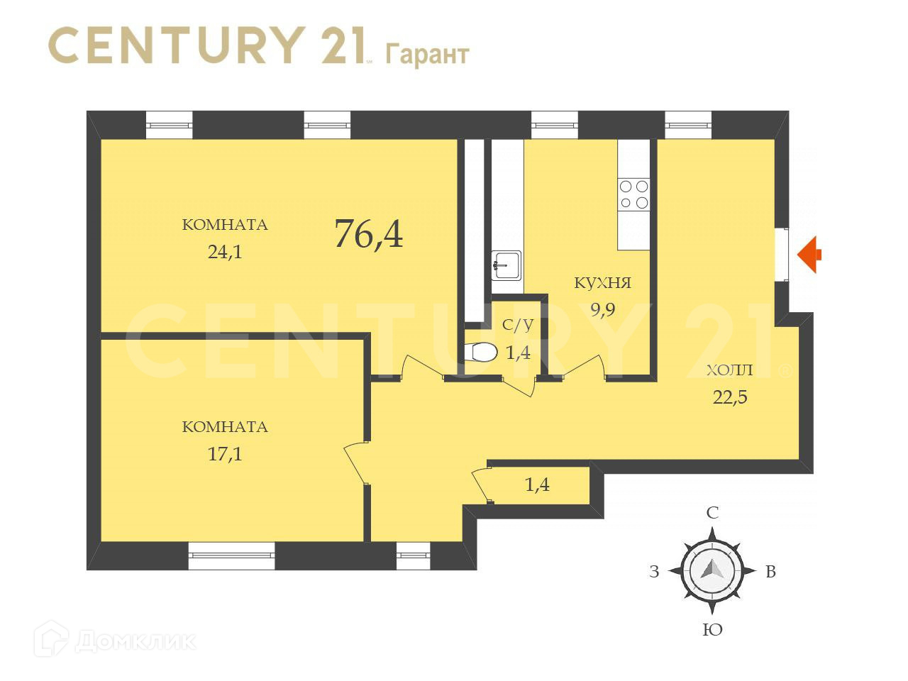Общая площадь 76.4 м2