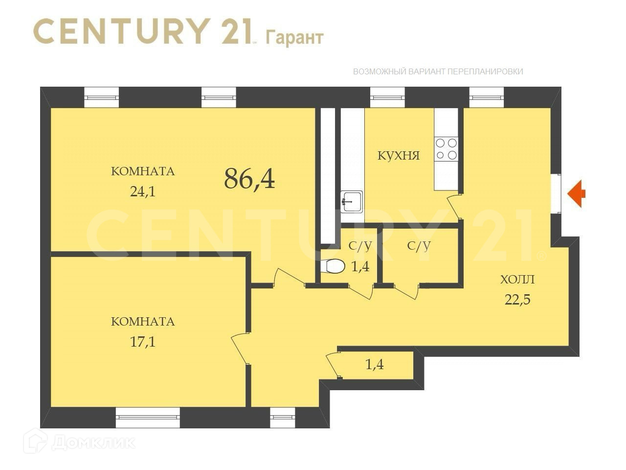 - Отличная планировка. Комнаты изолированные 24 кв. м и 17 кв. м правильной прямоугольной формы