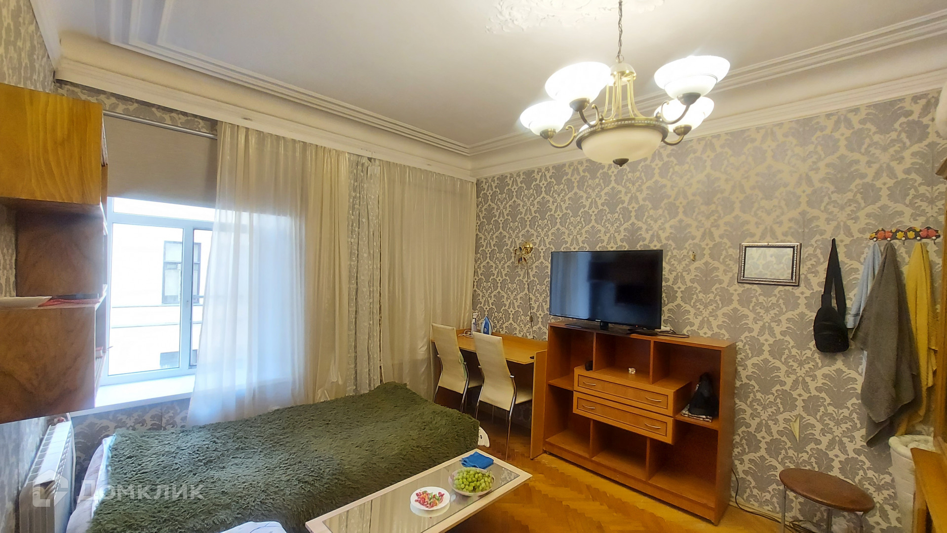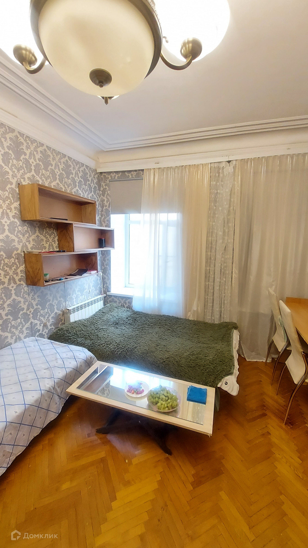 В квартире высокие потолки 2.84 м, которые украшены потолочными кессонами.