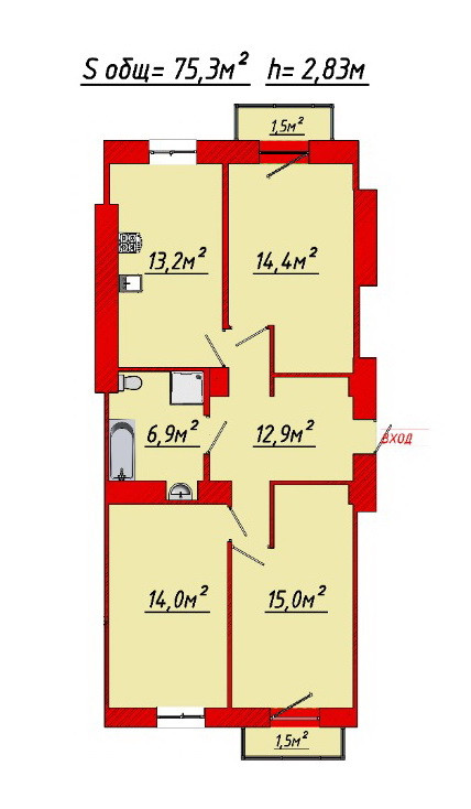 Общая площадь 76.2 м2