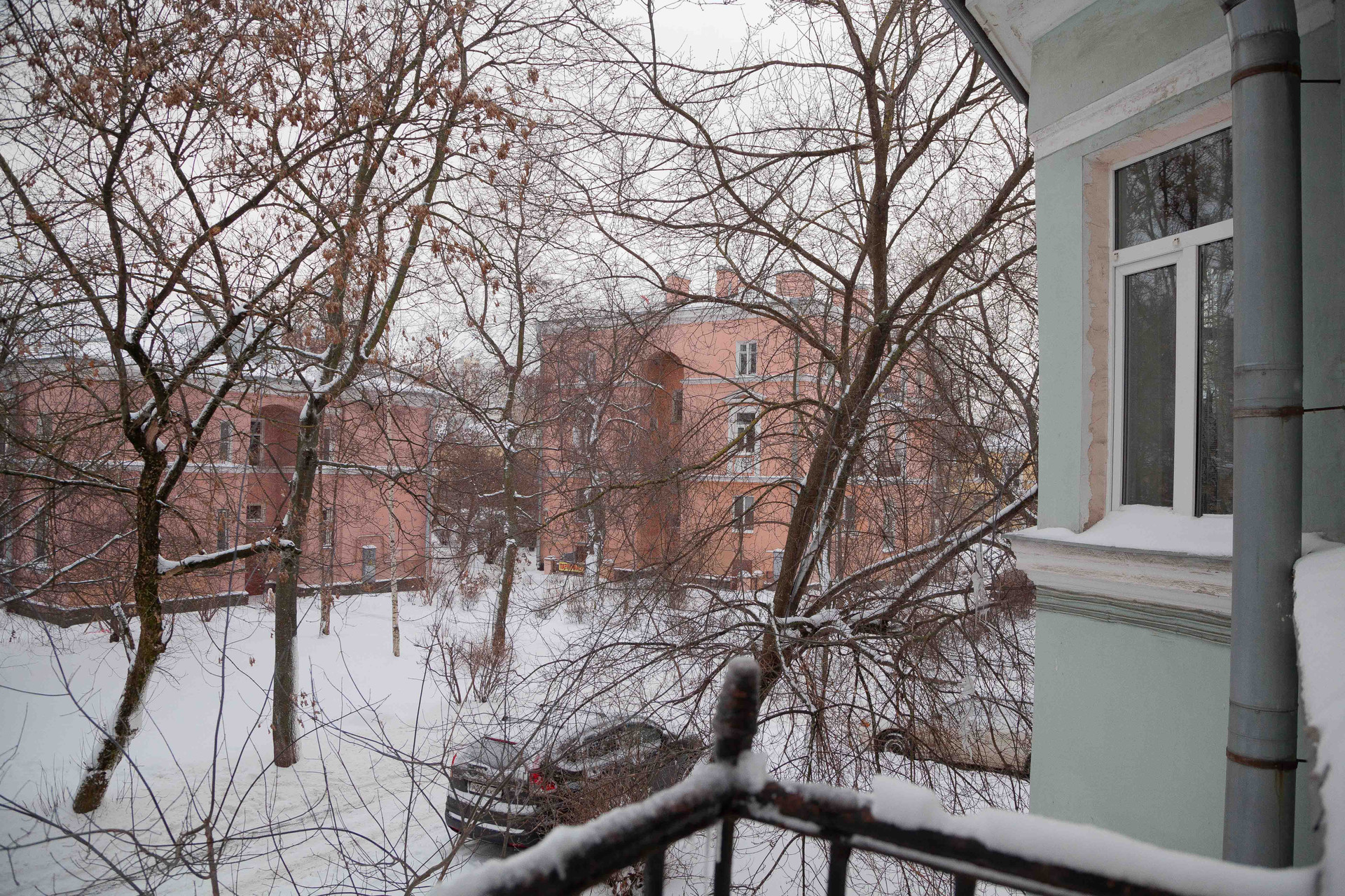 Вид из окна двор, улица
