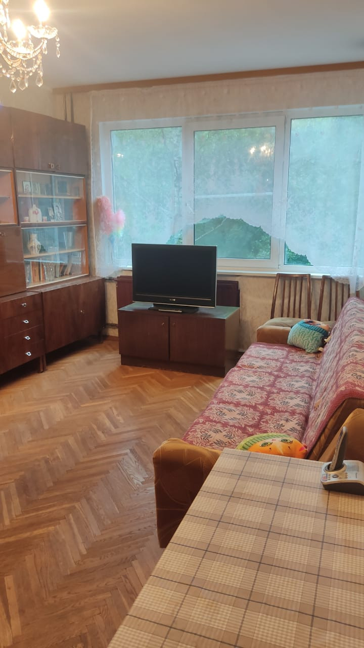 Квартира двусторонняя. Планировка смежно-изолированная. Нет перепланировки. Одно окно выходит на  бульвар, остальные во двор. И двор и бульвар озеленены. Всегда есть место для парковки. Тихое и спокойное место в черте города.