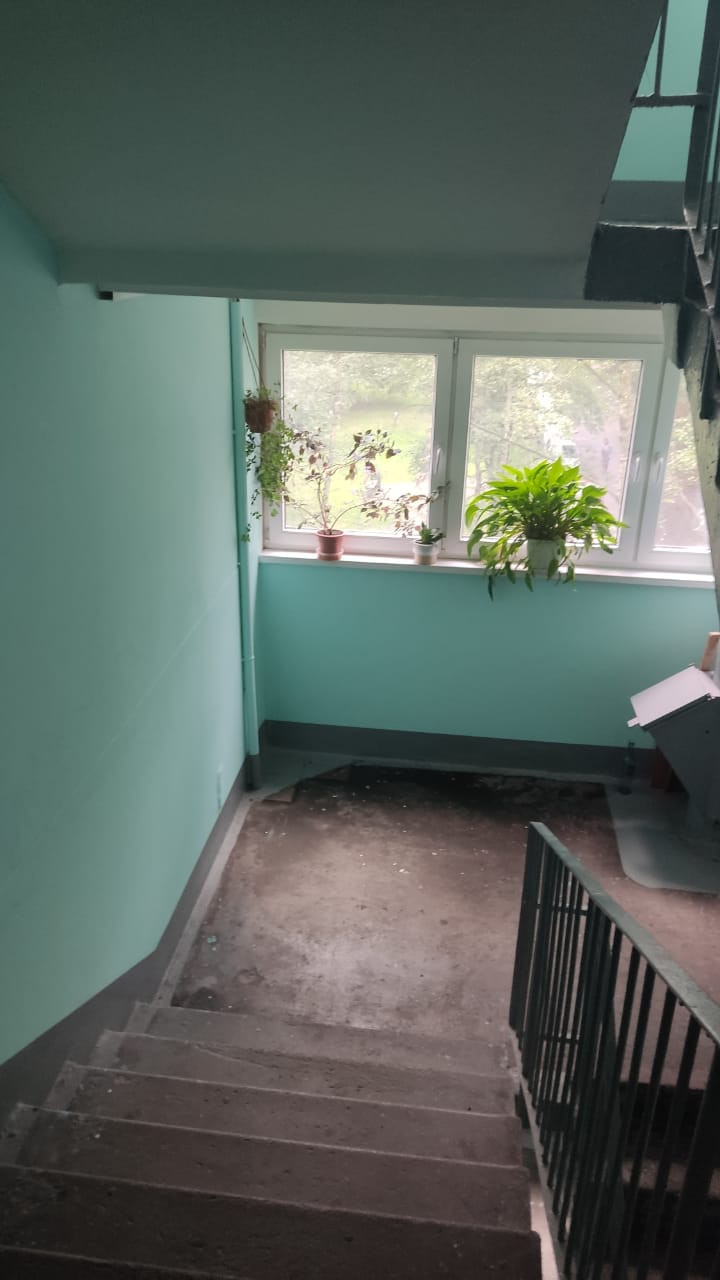 В квартире заменены трубы, стоят счетчики на воду и электричество. На все окна установлены стеклопакеты. В подъезде был произведен ремонт.