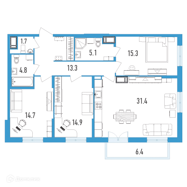 Общая площадь 103.1 м2